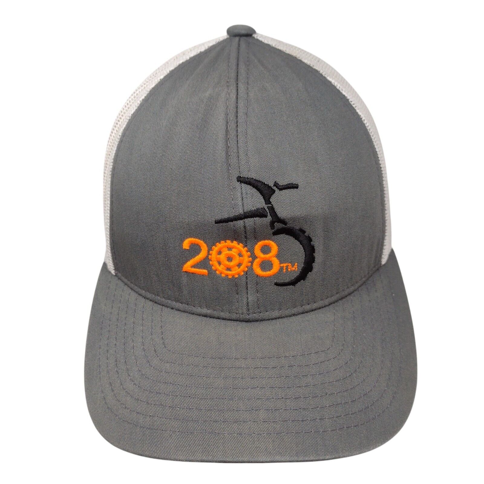 208 Bike Gear Snapback Trucker Hat Gray OSFA Mesh Back Pacific HeadwearCondition: This Pacific Headwear Hat has blemishes on both...