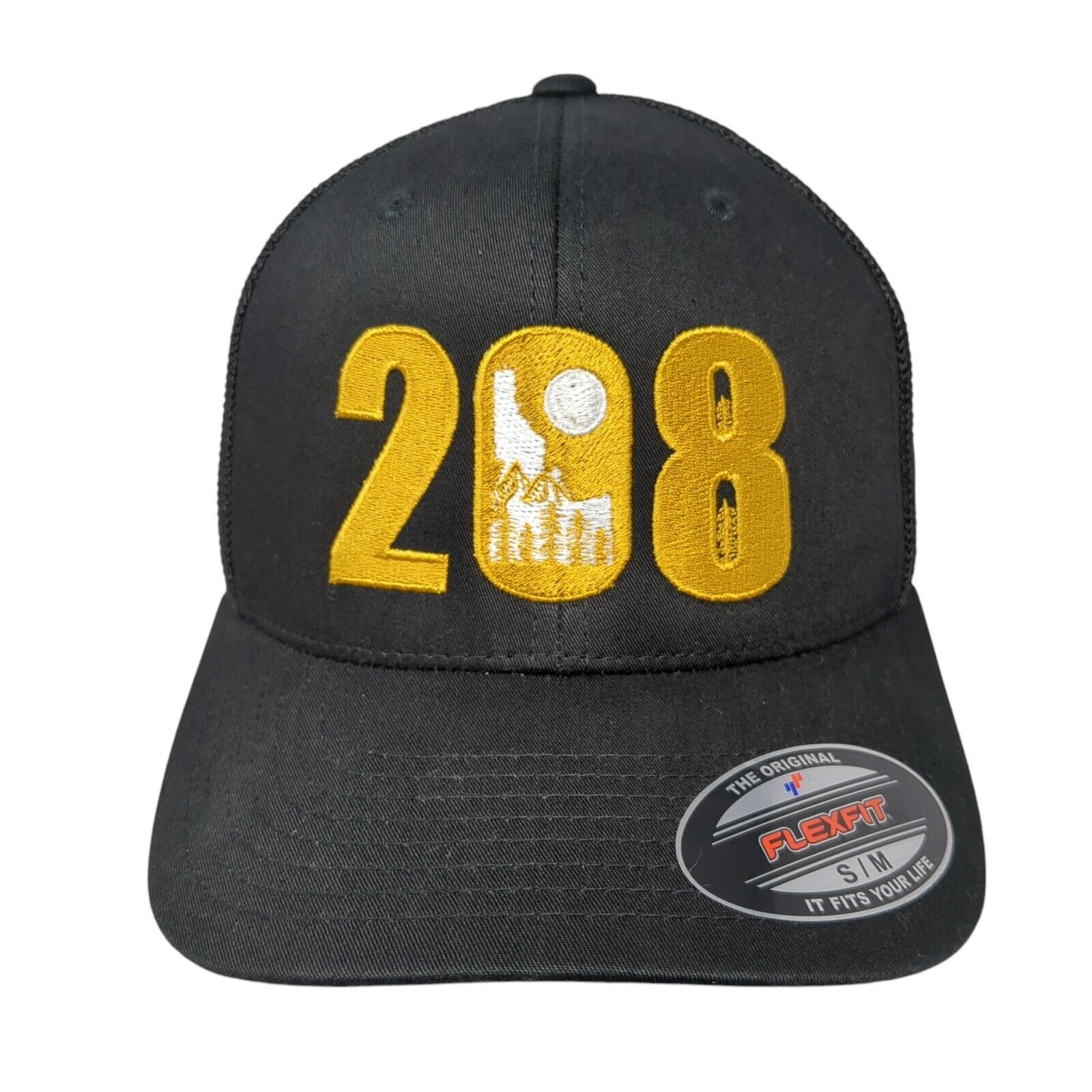 208 Fitted Trucker Hat Black S/M Flexfit Mesh Back Embroidered Port Authority