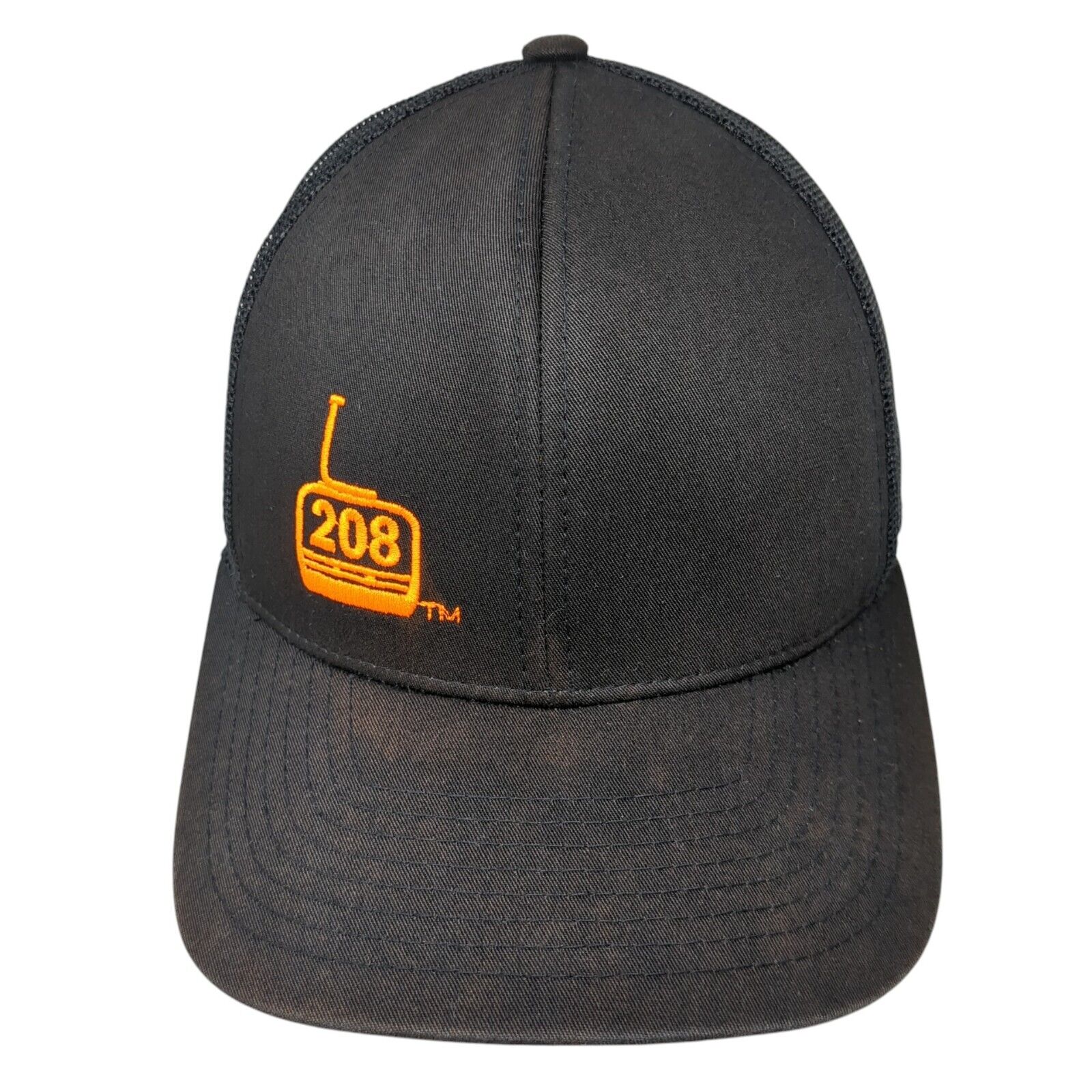 208 Logo Snapback Mesh Back Trucker Hat Black One Size Solid Mesh Back