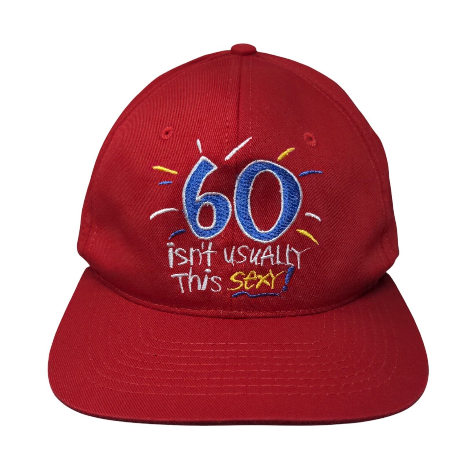 60 Isn't Usually This Sexy Snapback Hat Red OSFA Adjustable Embroidered ShoeboxCondition: This Unbranded Hat has blemishes inside. Sold as...