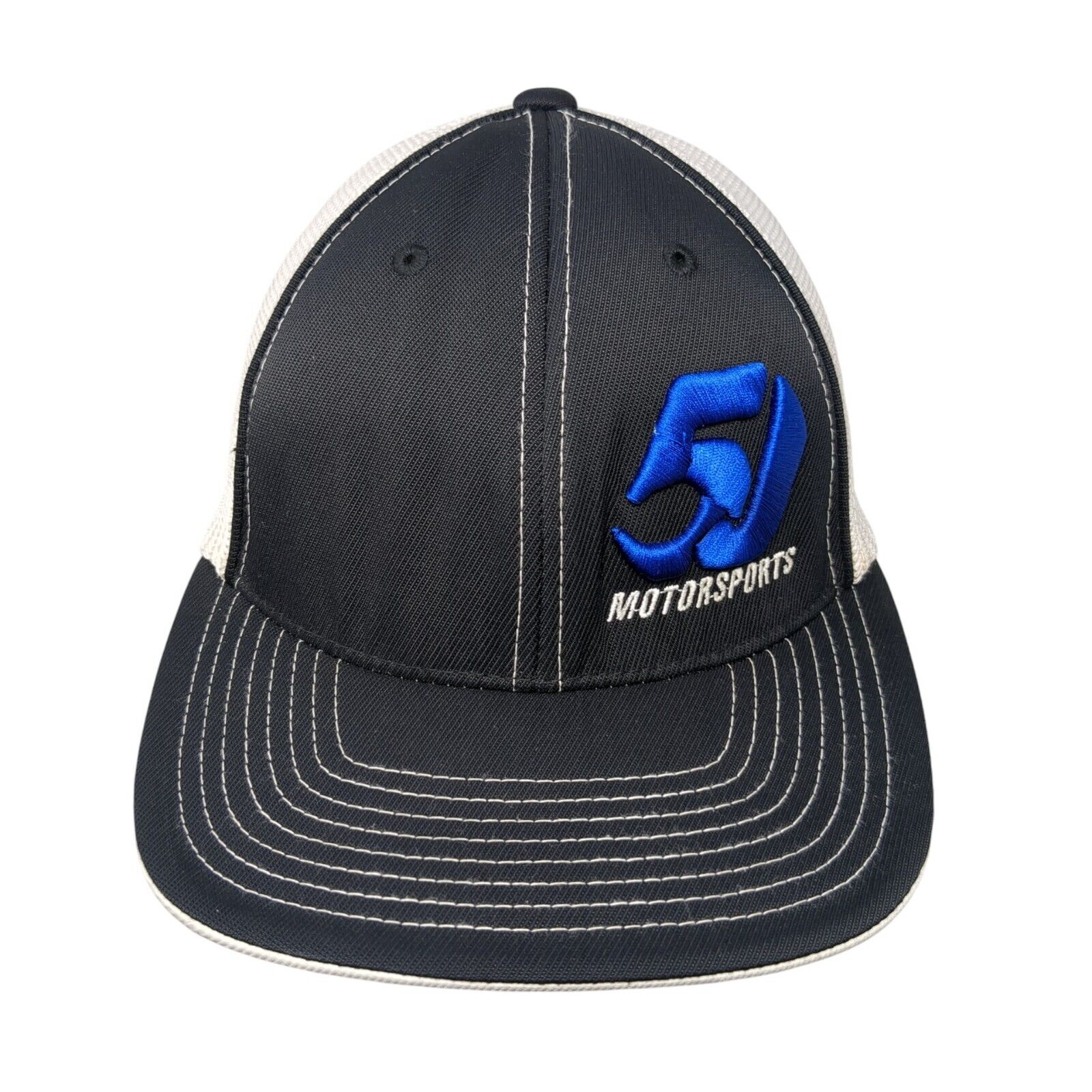 5J Motorsports Fitted Trucker Hat Black 6 7/8-7 3/8 Mesh Back Pacific HeadwearCondition: This Pacific Headwear Hat has blemishes on...
