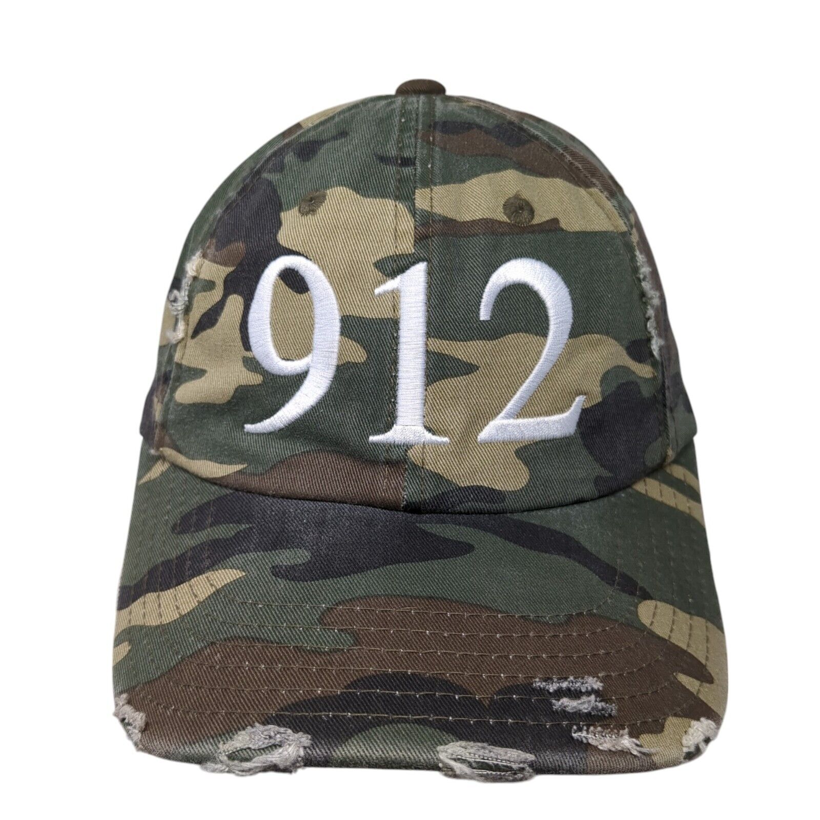 912 Slideback Hat Camouflage One Size Adjustable Embroidered Distressed District