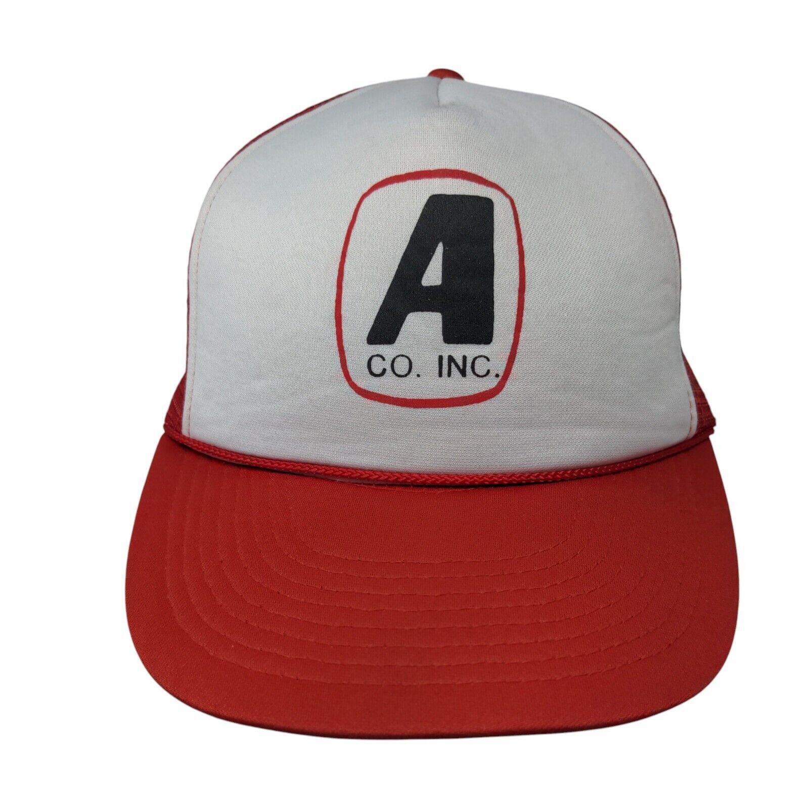 A Co Inc. Snapback Trucker Hat Red OSFA Adjustable Mesh Back Rope Mohr'sCondition: This Mohr's Hat has blemishes outside. Sold...