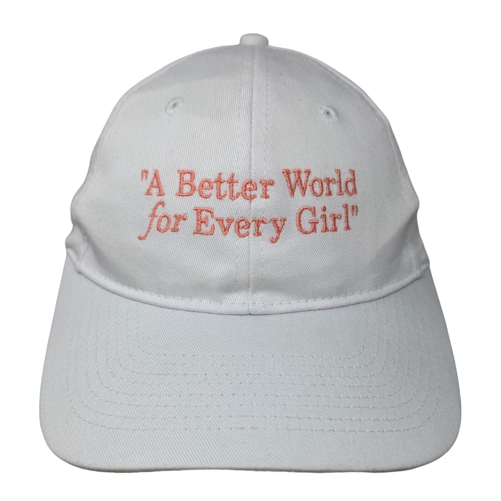 A Better World For Every Girl Strapback Hat White OS Adjustable EmbroideredCondition: This Port & Company Hat has no stains...
