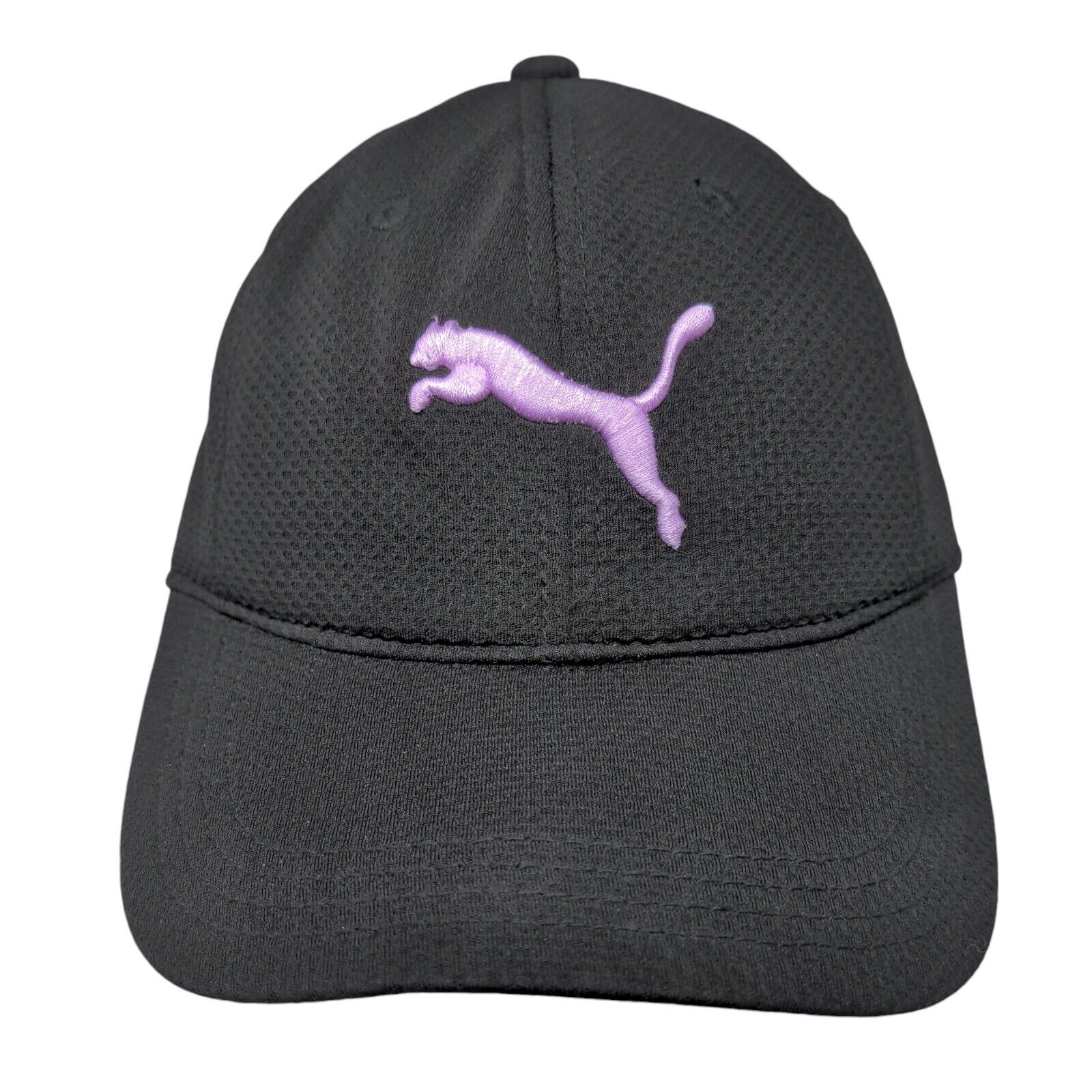 PUMA Fitted Hat Black L/XL Lightweight Embroidered Vented Holes 6 Panel