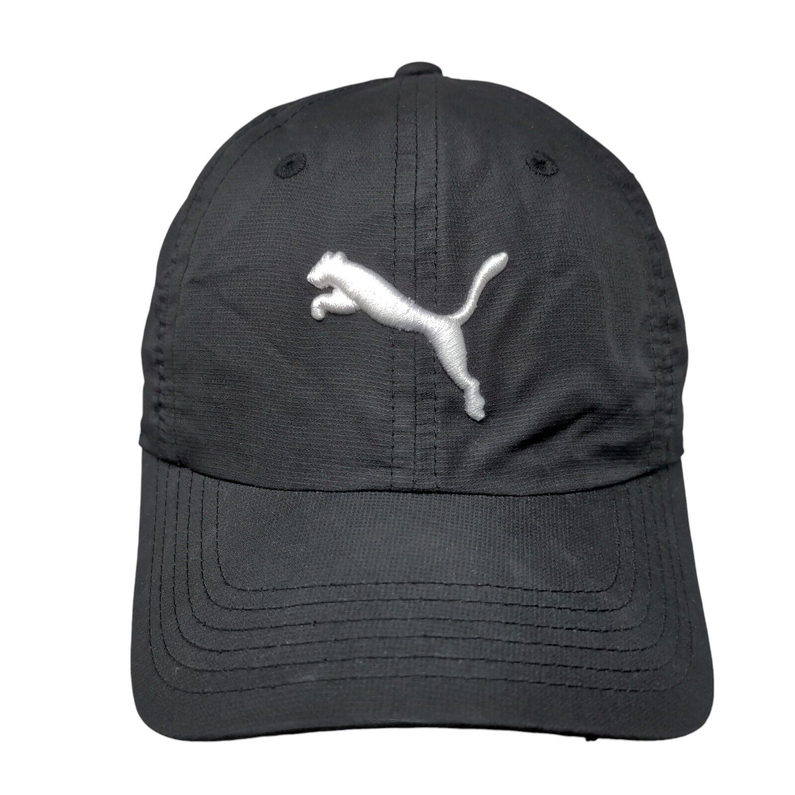 PUMA Slideback Hat Black OSFA Adjustable Embroidered Logo Vented Holes 6 Panel