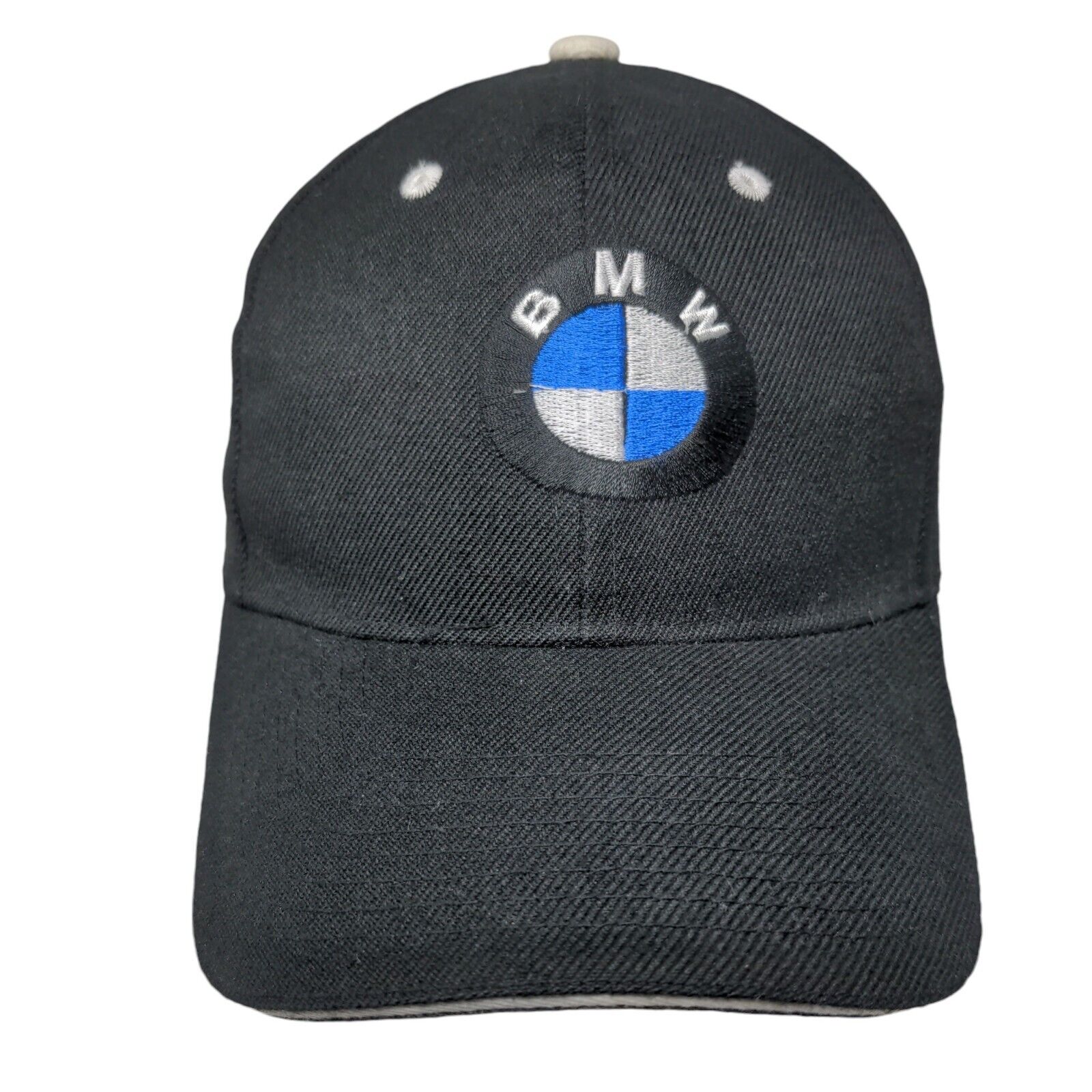 BMW Slideback Hat Black One Size Adjustable Embroidered Vented Holes 6 Panel