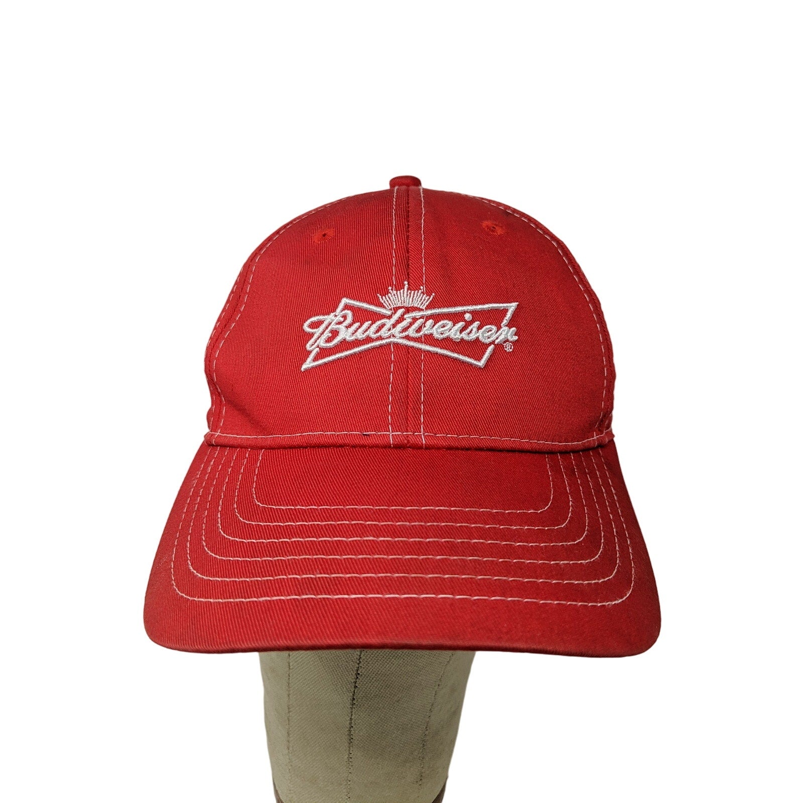 Budweiser Slideback Hat Red One Size Adjustable Embroidered Vented HolesCondition: This Budweiser Hat has blemishes on both inside and outside....