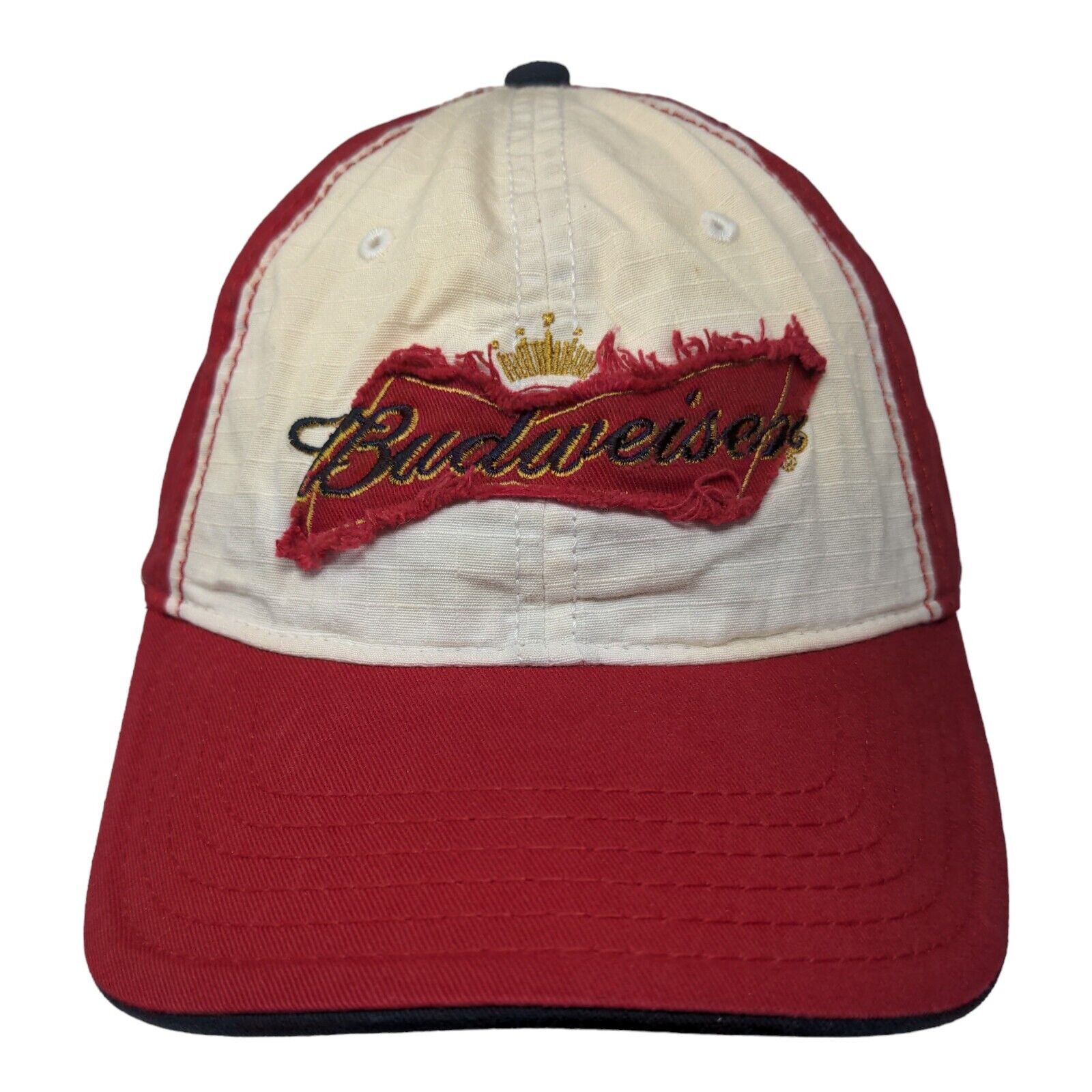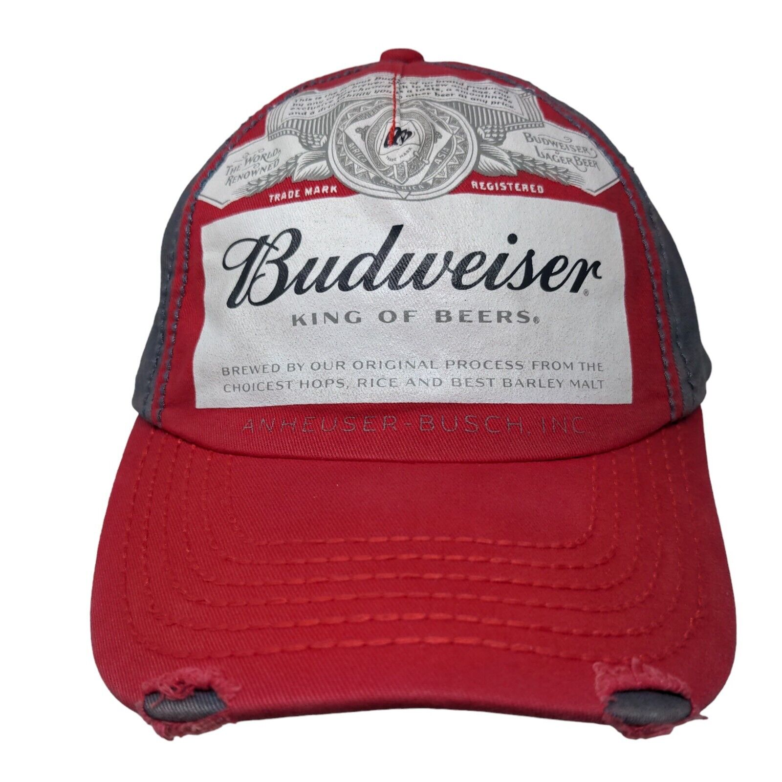 Budweiser King of Beers Strapback Hat Multicolor OSFA Distressed Vented Holes