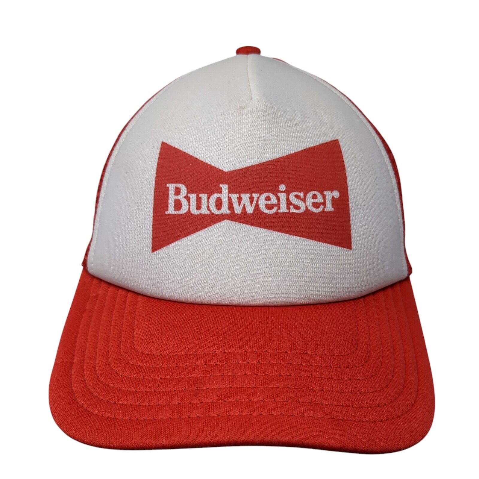 Budweiser Snapback Mesh Back Trucker Hat Red One Size ColorblockCondition: This Budweiser Hat has blemishes on both inside and outside....
