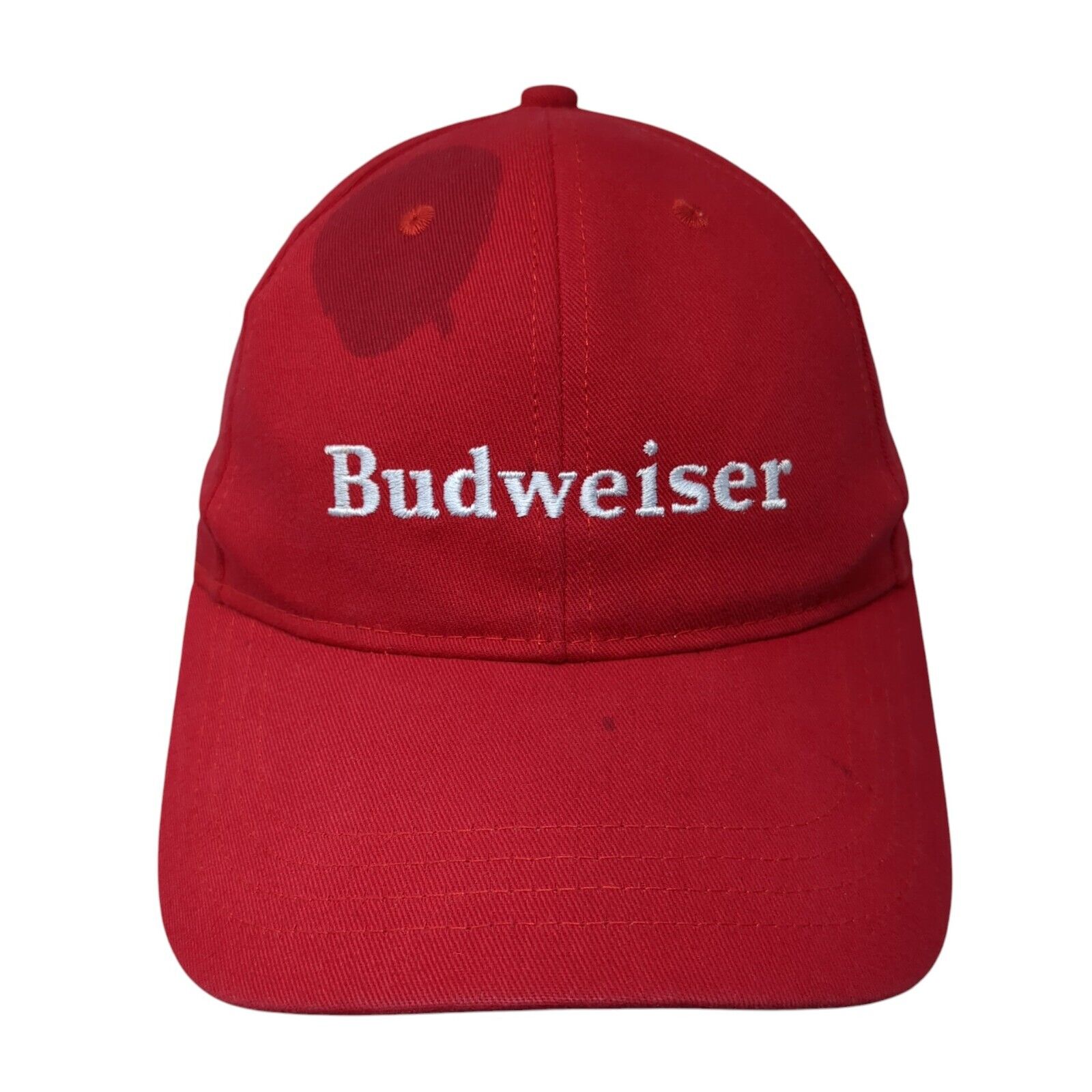 Budweiser Snapback Hat Red One Size Adjustable Embroidered Official ProductCondition: This hat has blemishes on both the inside and outside....