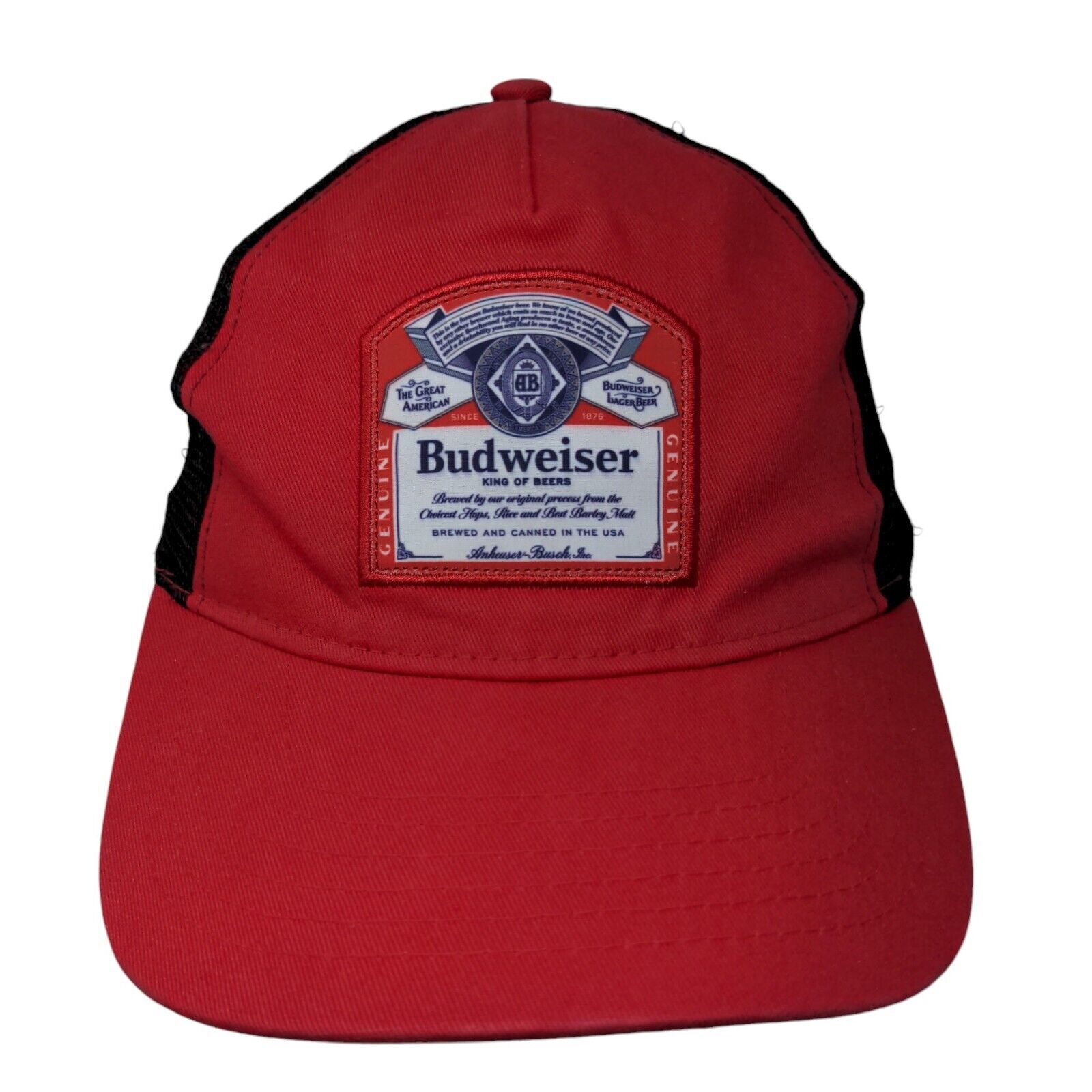 Budweiser Slideback Mesh Back Trucker Hat Red One Size ColorblockCondition: This Budweiser Hat has blemishes on the outside. Sold as...