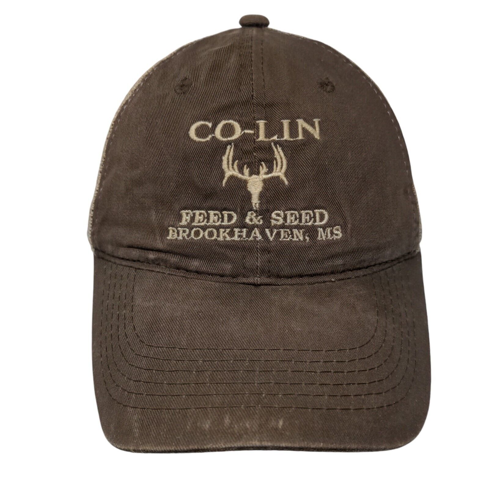 Co-Lin Feed & Seed Strapback Mesh Back Trucker Hat Brown OSFM 6 Panel