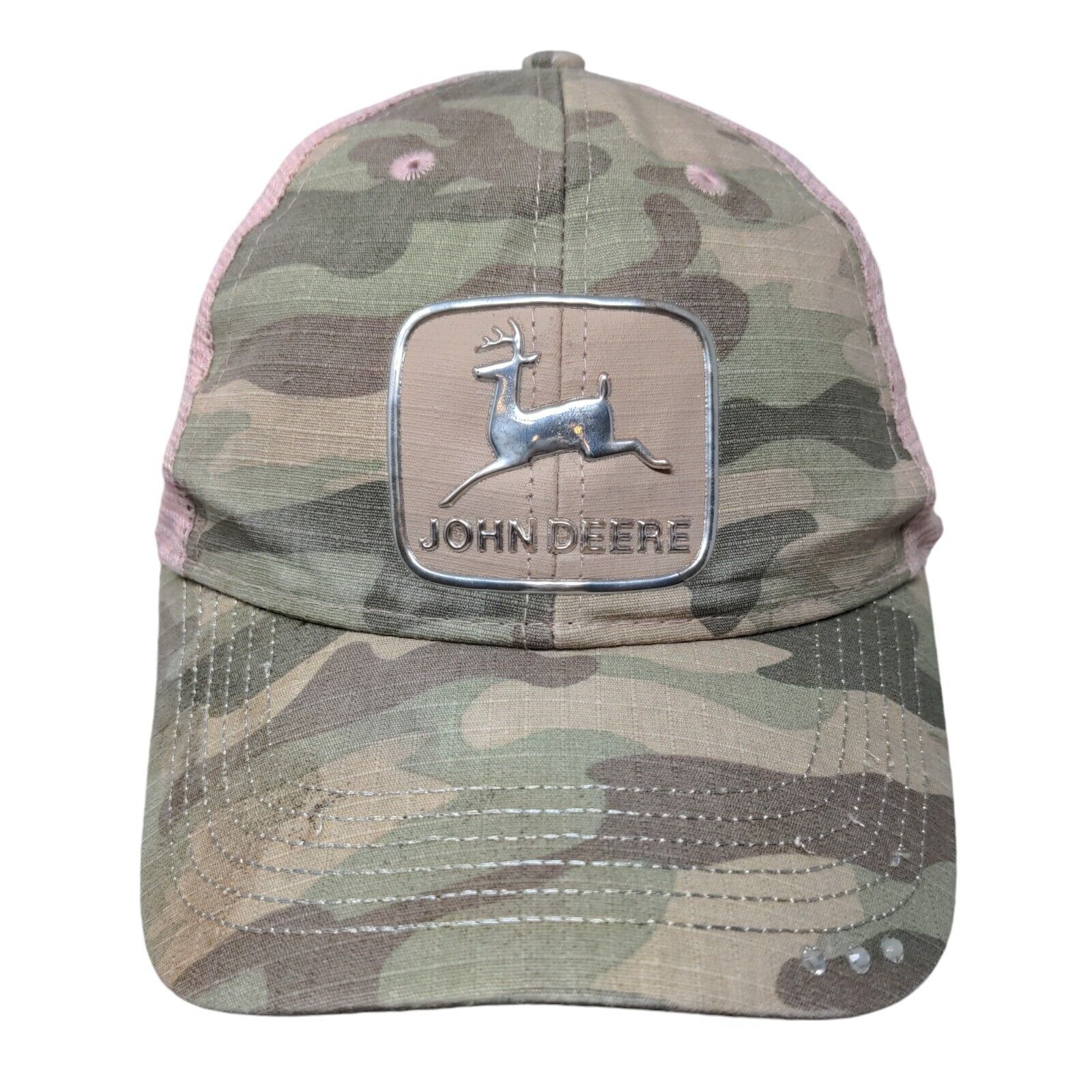 John Deere Snapback Mesh Back Trucker Hat Camouflage OSFM Tractor Girl