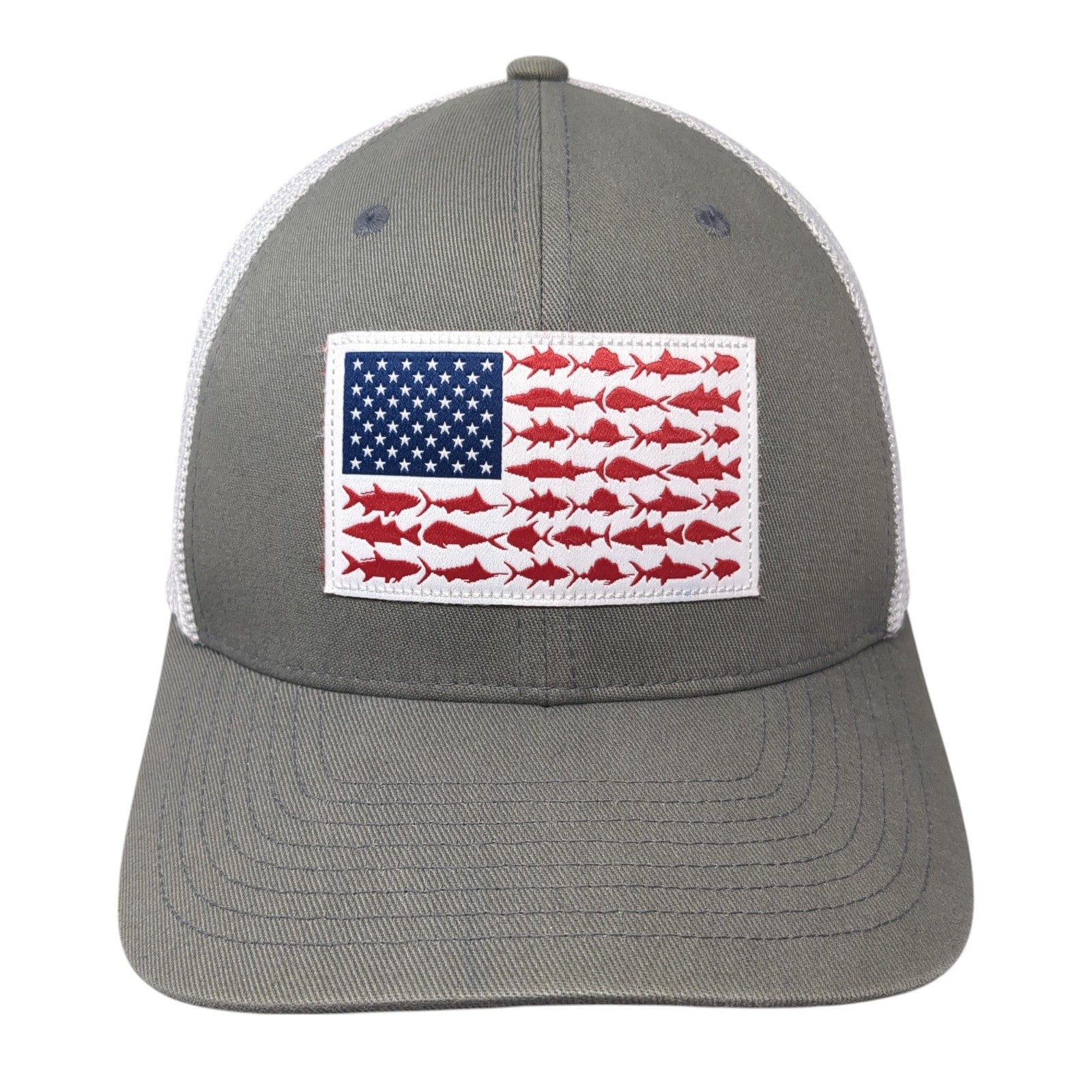 Columbia PFG Fish Flag Fitted Trucker Hat Gray One Size Mesh Back Patriotic