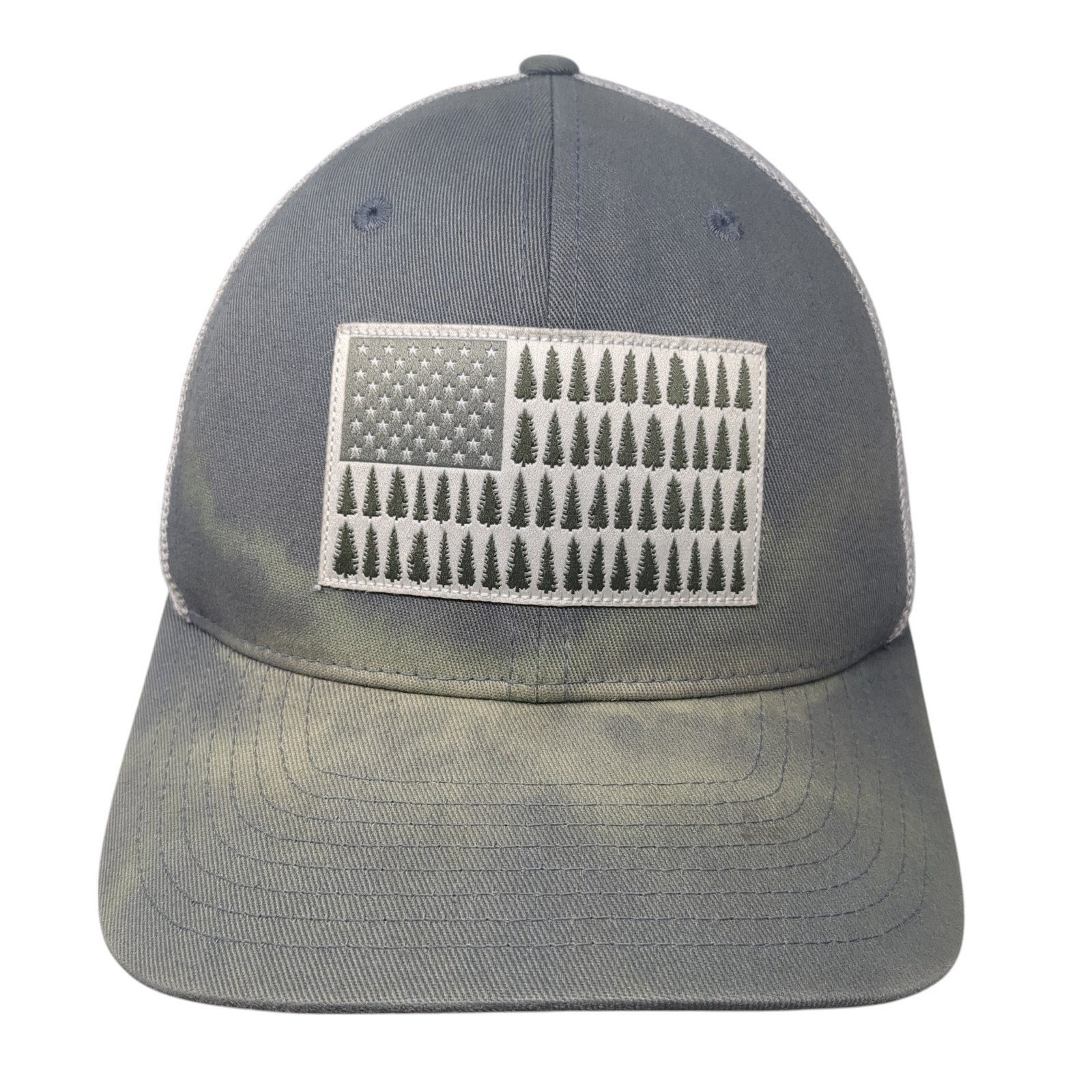 Columbia Tree Flag Fitted Trucker Hat Gray XL Lightweight Patriotic Mesh BackCondition: This hat has blemishes on both the inside...