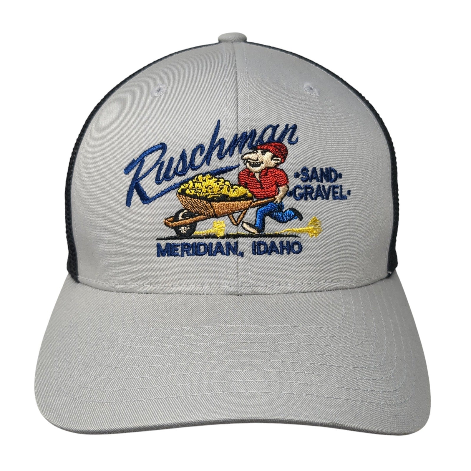 Ruschman Sand Gravel Fitted Mesh Back Trucker Hat Gray Medium FlexfitCondition: This hat has no rips or stains! Sold as...