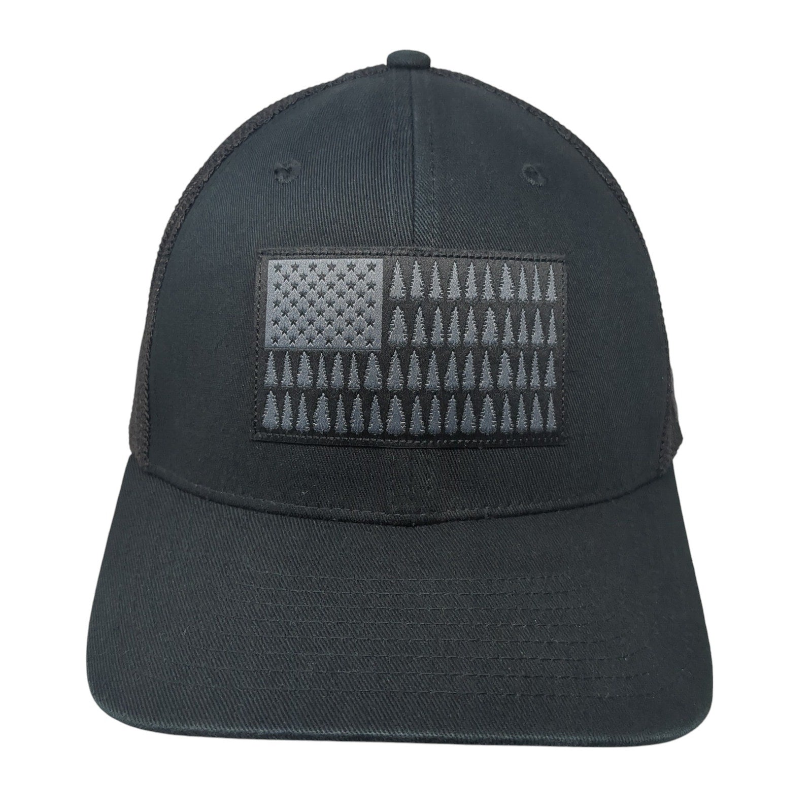 Pine Tree USA Flag Fitted Mesh Back Trucker Hat Black XL Columbia