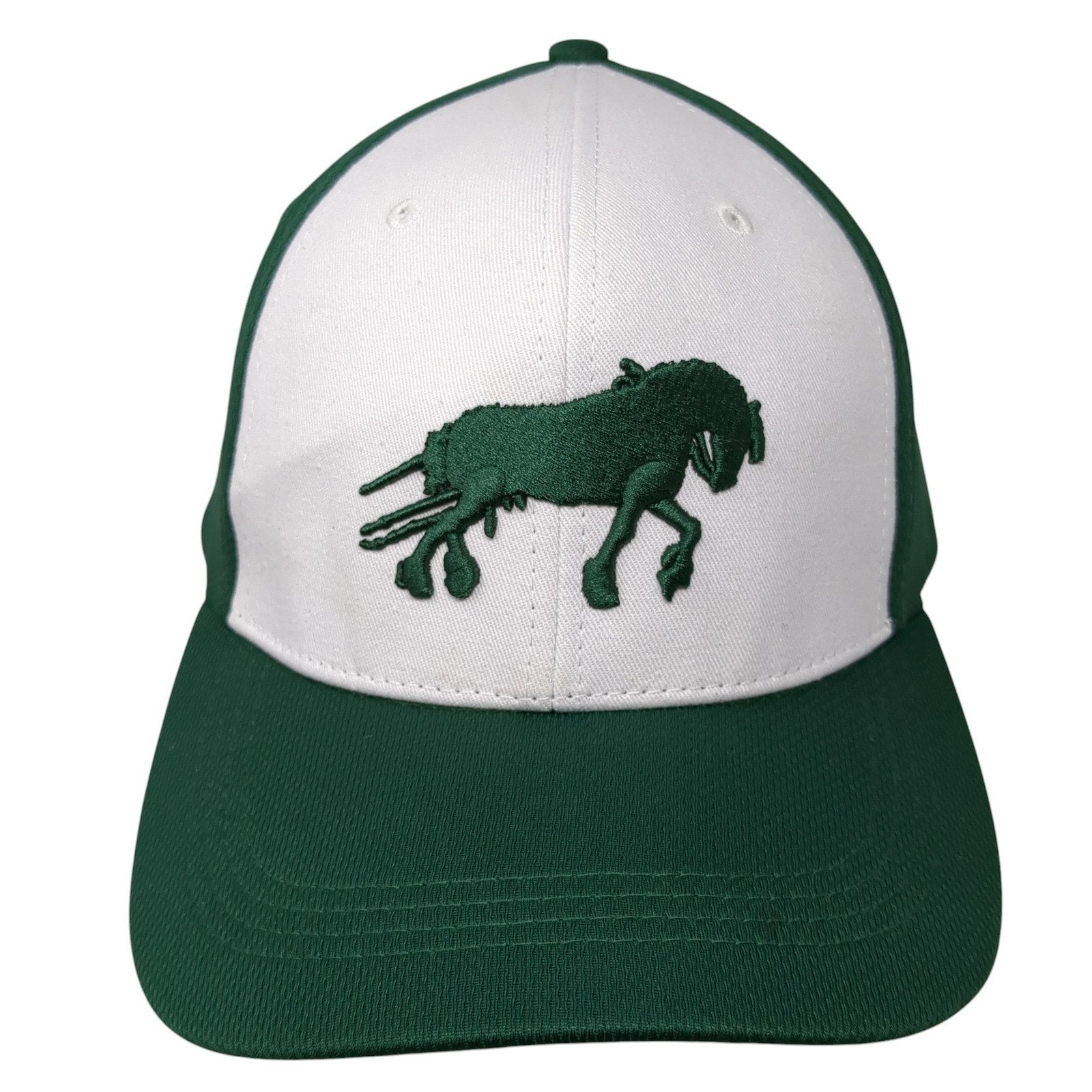 Mollitiam Horse Fitted Hat Green Large Embroidered Colorblock 6 PanelCondition: This hat has no rips or stains! Sold as pictured...