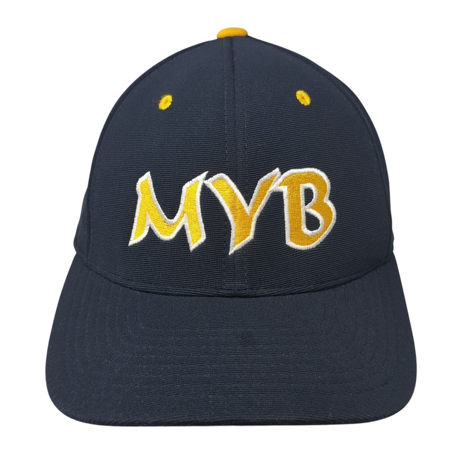 MYB Fitted Baseball Cap Blue 7 3/8 Embroidered 6 Panel 498F Pacific HeadwearCondition: This hat has blemishes on the outside....