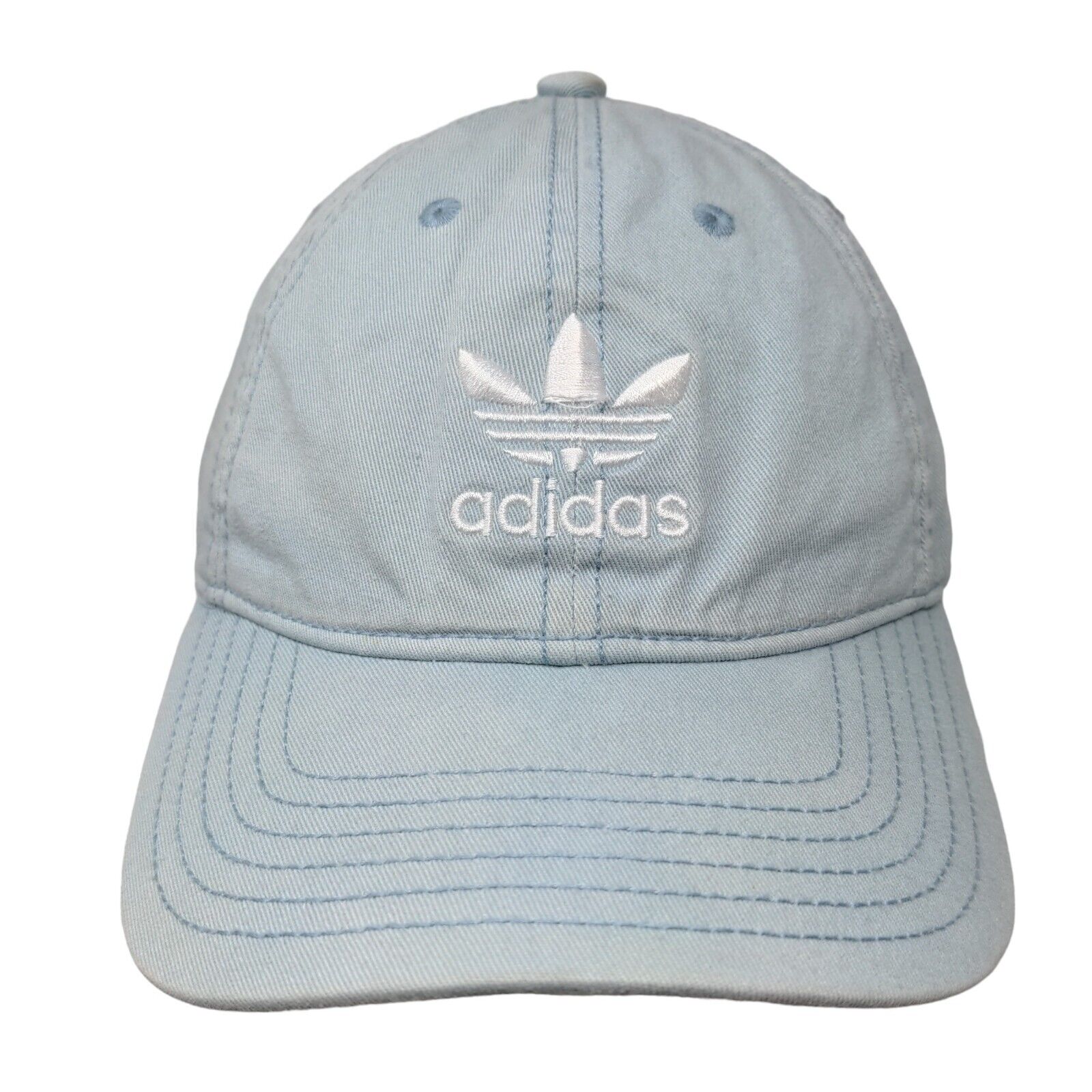 Adidas Slideback Hat Blue OS Adjustable Embroidered Trefoil Acid Wash Denim