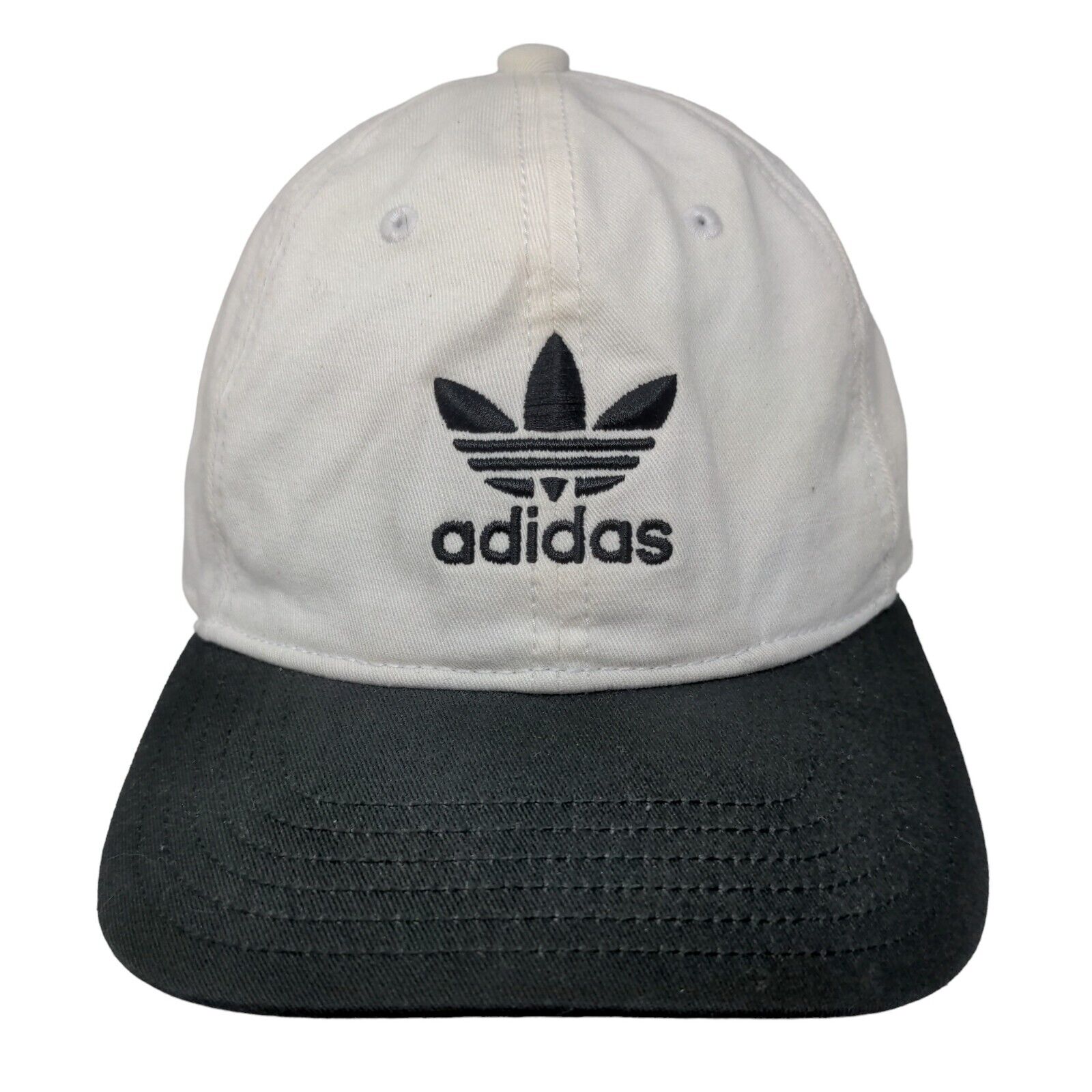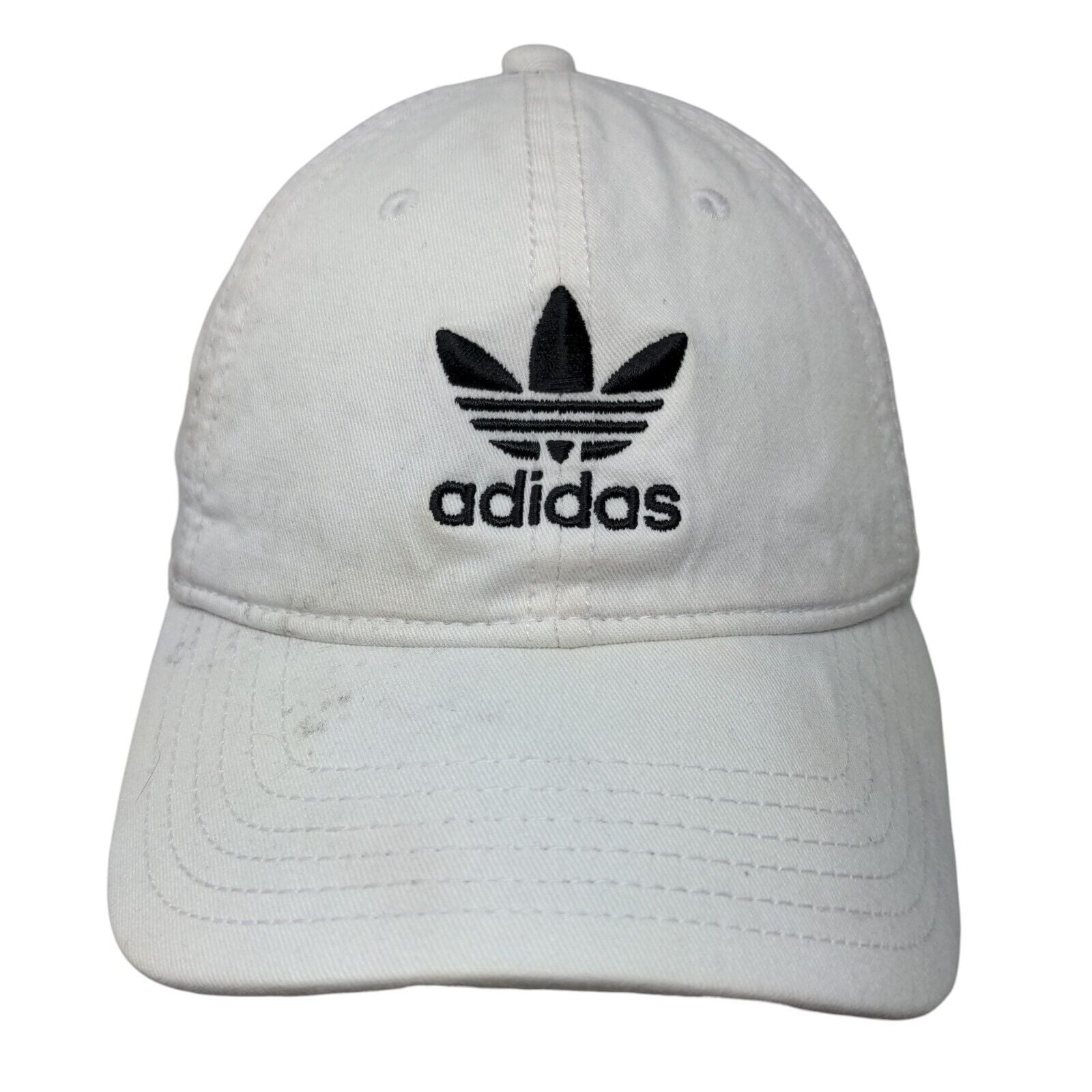 Adidas Trefoil Logo Slideback Hat White One Size Adjustable EmbroideredCondition: This hat has blemishes on both the inside and outside....