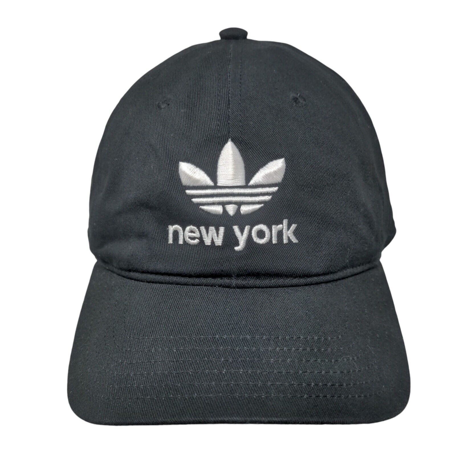 Adidas Trefoil New York Slideback Hat Black OSFM Embroidered 6 PanelCondition: This Adidas Hat has blemishes on both inside and...