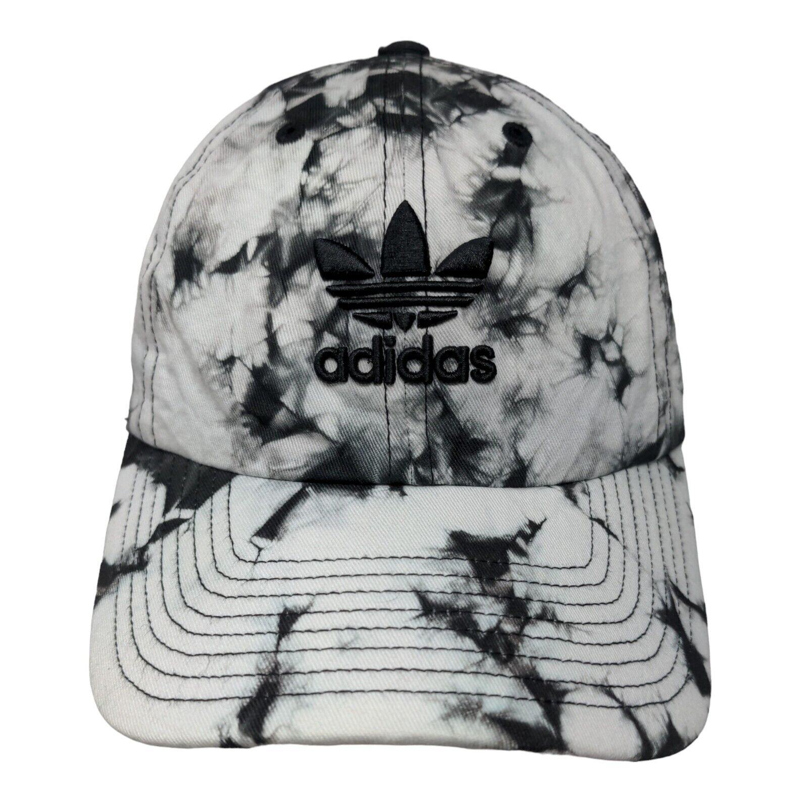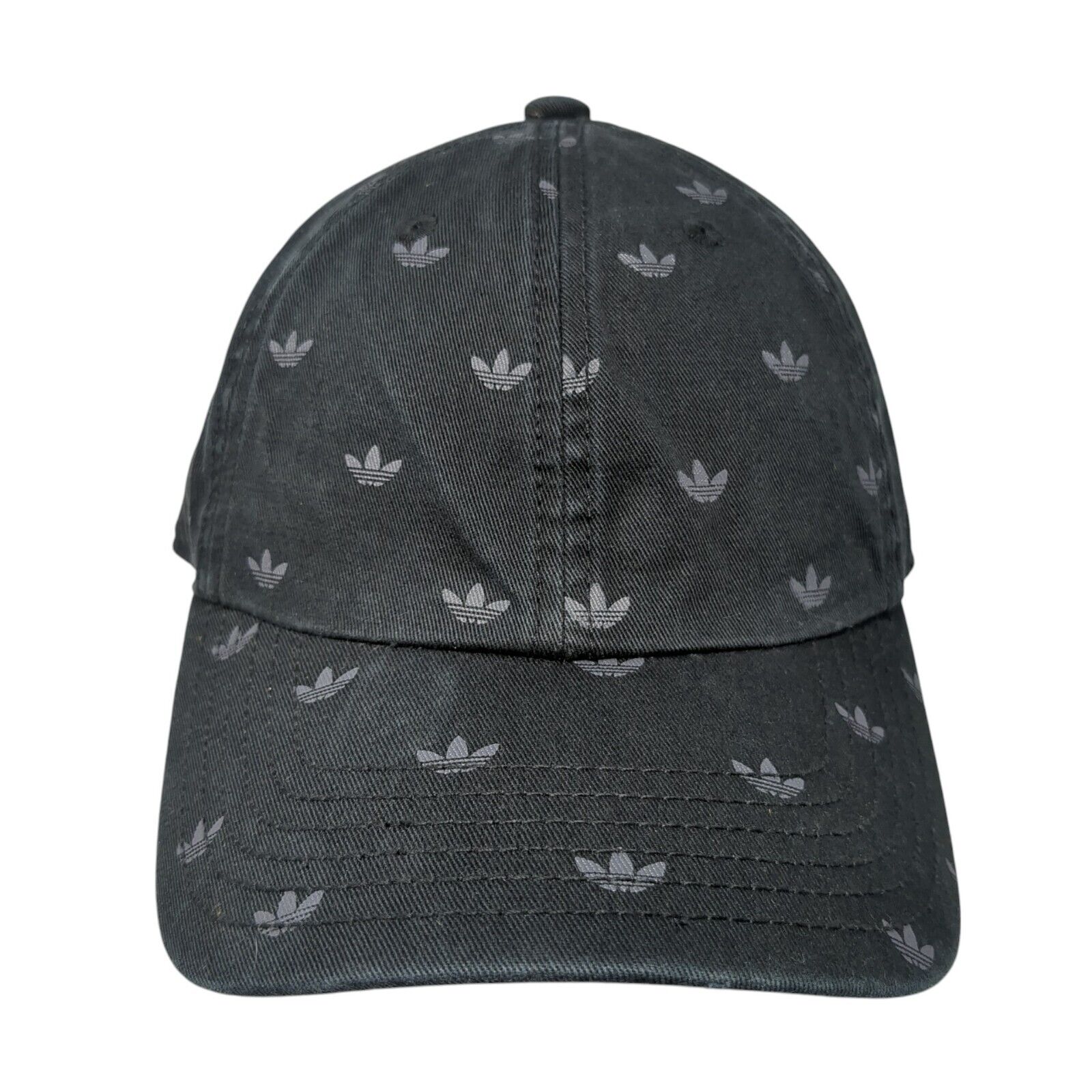 Adidas Trefoil Slideback Hat Black One Size Adjustable All Over PrintCondition: This Adidas Hat has blemishes on the outside. Sold...