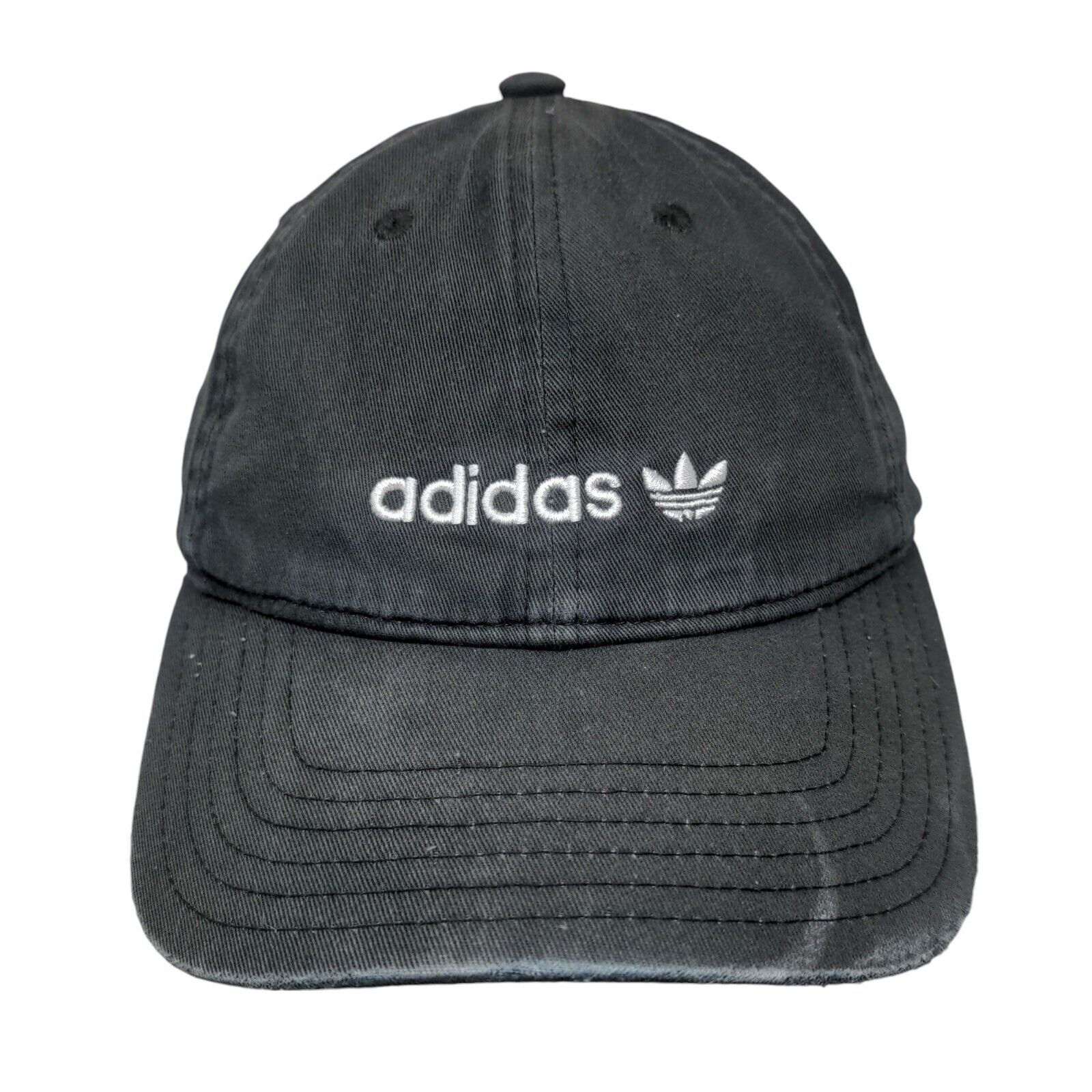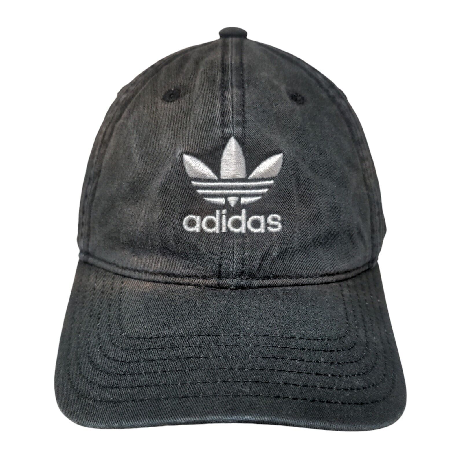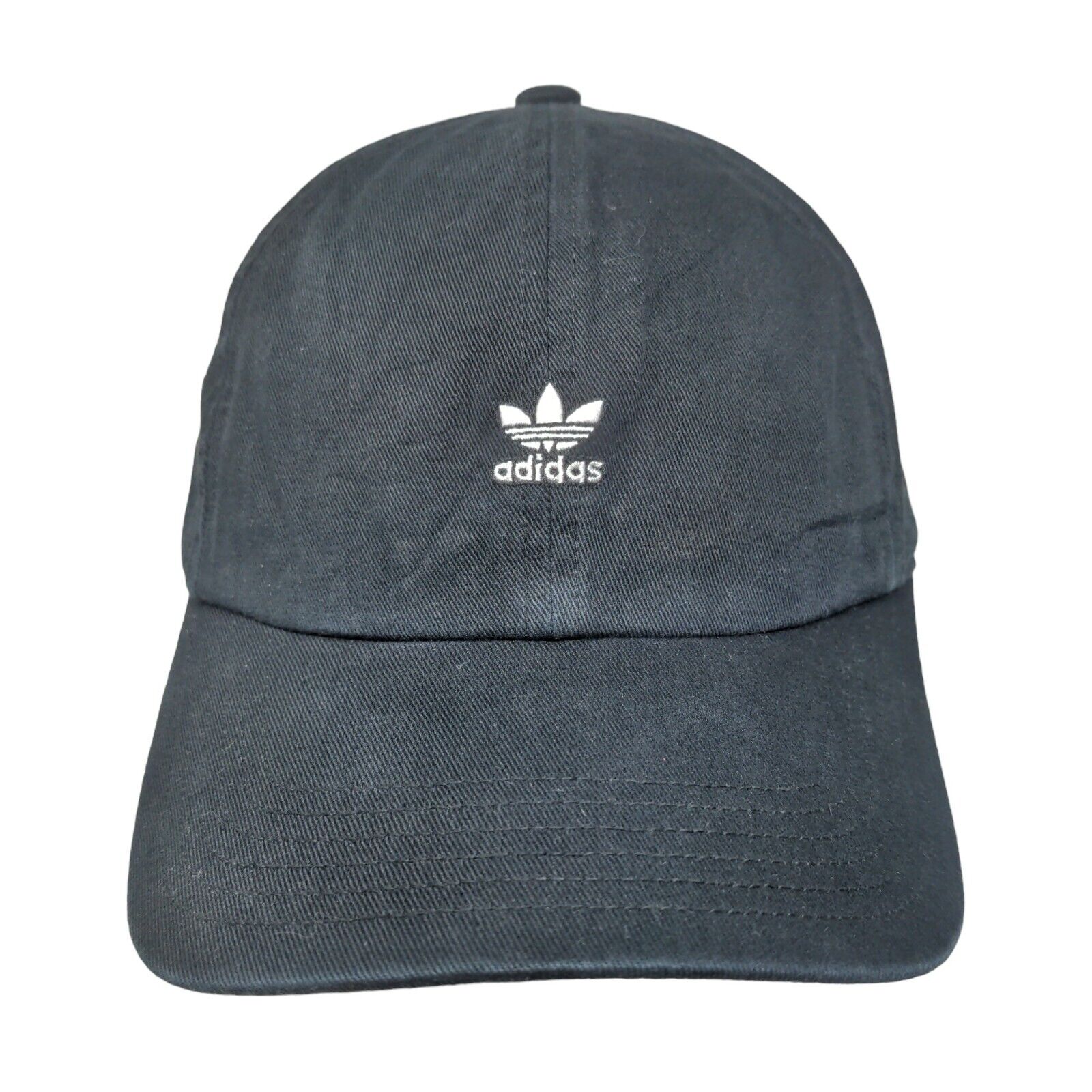 Adidas Trefoil Slideback Hat Black One Size Embroidered Logo 3 StripesCondition: This hat has blemishes on both the inside and...