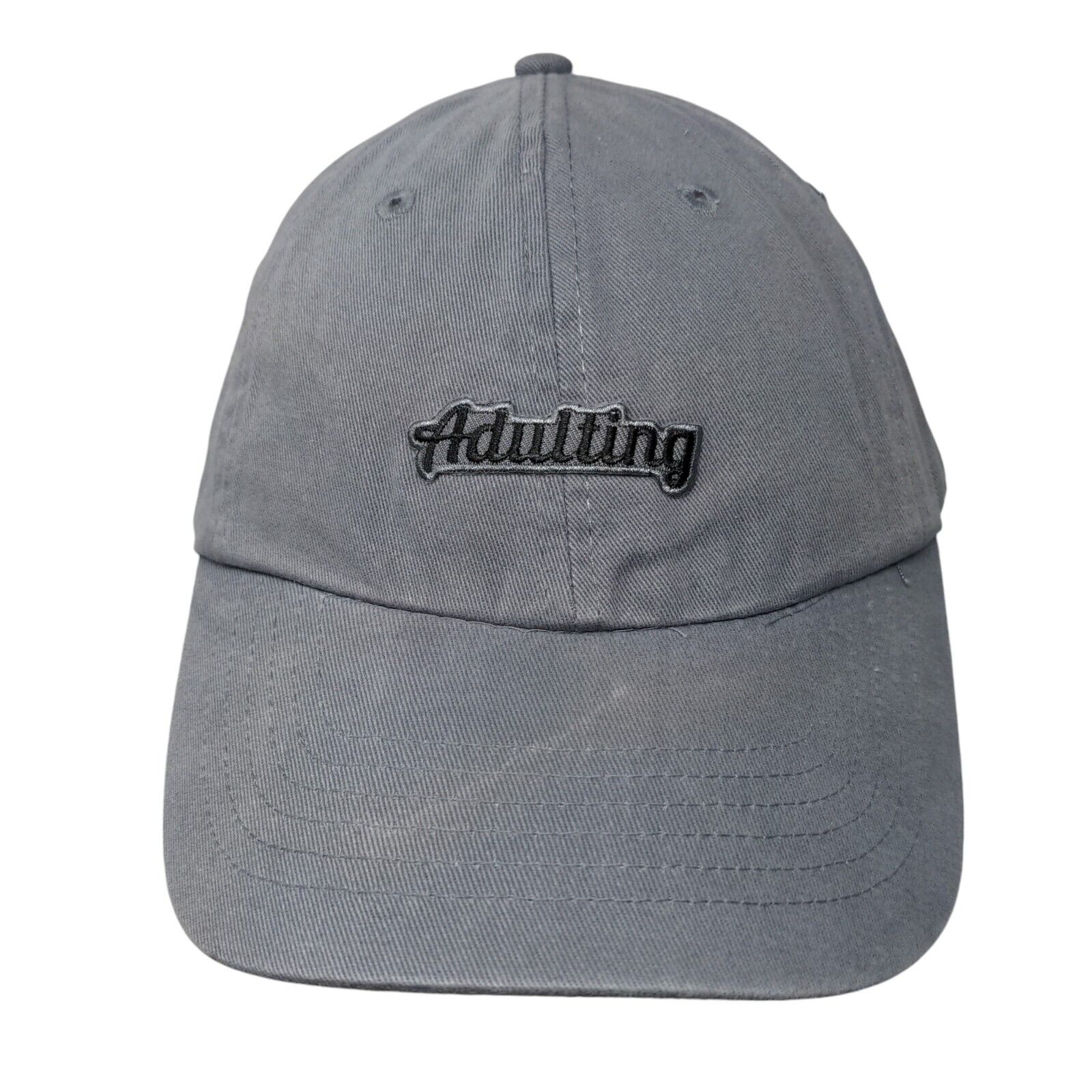 Adulting Slideback Hat Gray OSFM Adjustable Solid 6 Panel Vent HolesCondition: This KC Caps Hat has blemishes on the outside....
