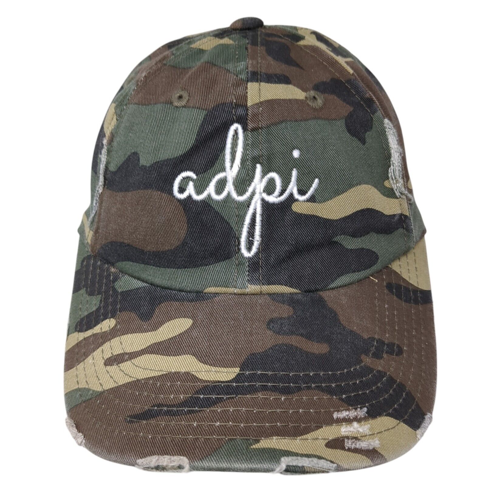 adpi Slideback Hat Camouflage OS Adjustable Embroidered Distressed DistrictCondition: This District Hat has no stains or rips! Sold as pictured,...