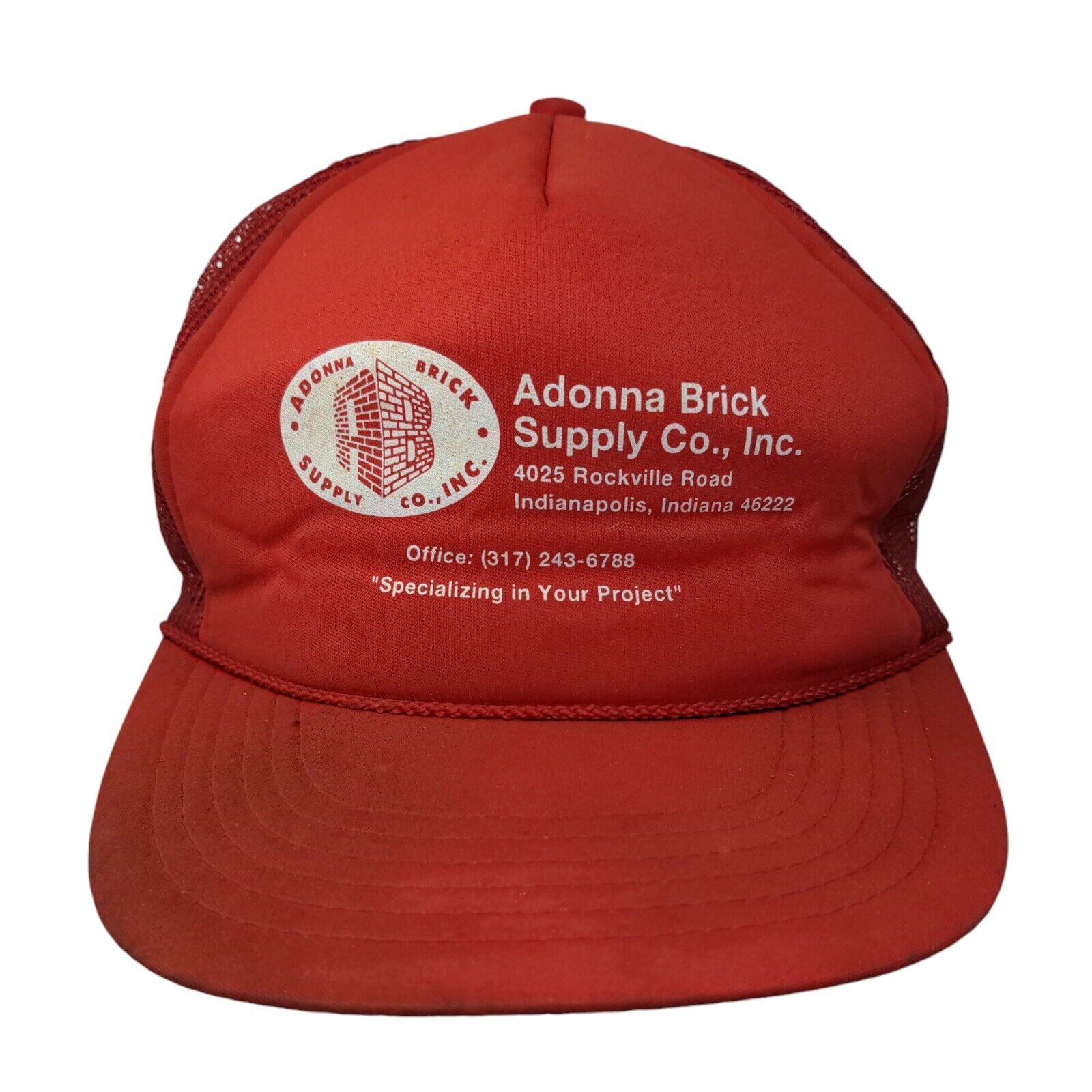 Adonna Brick Supply Co Inc. Snapback Trucker Hat Red OSFA Mesh Back Rope 6 PanelCondition: This Unbranded Hat has blemishes...