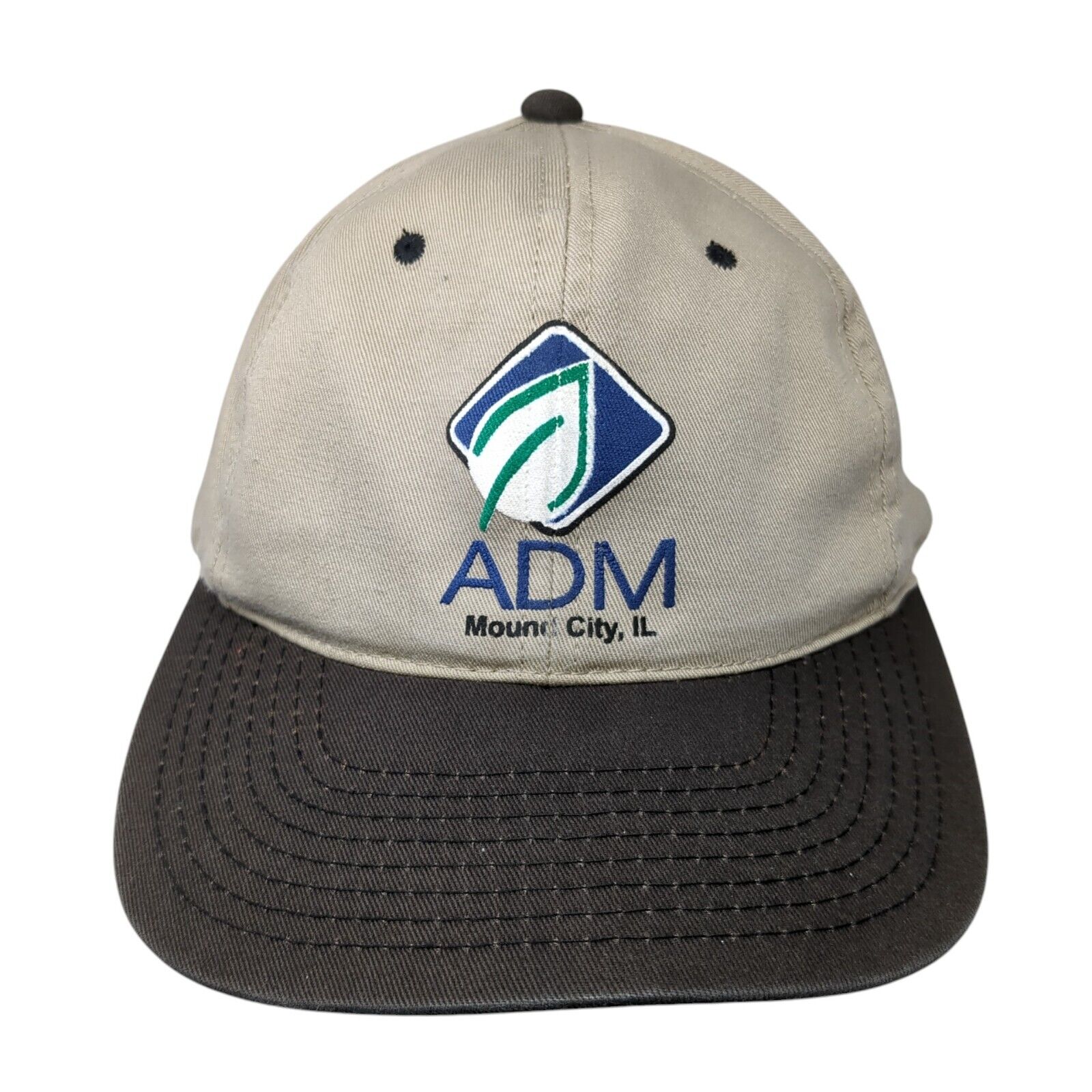ADM Mound City IL Snapback Hat Tan One Size Adjustable Vented Holes OC