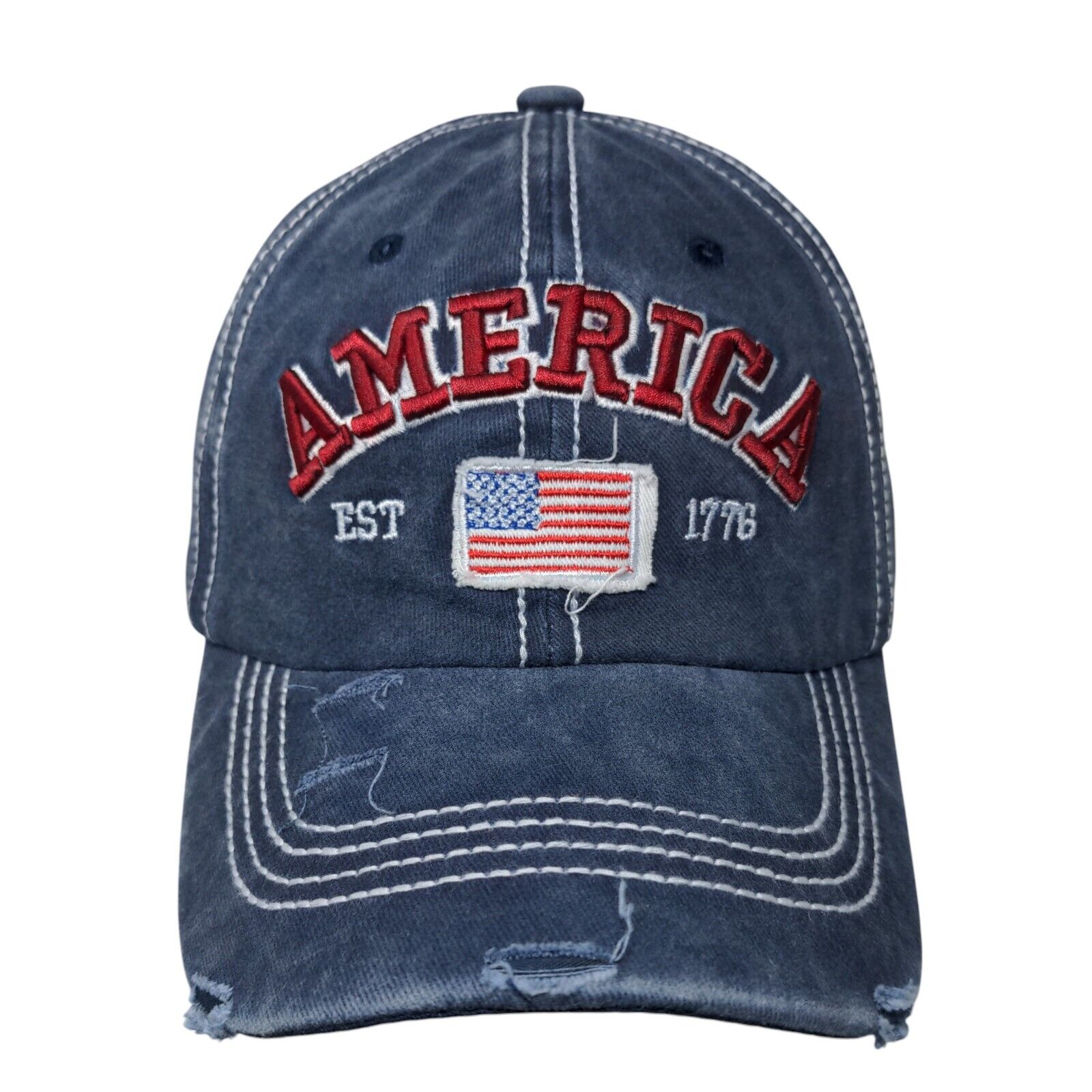 America Est 1776 Slideback Hat Blue One Size Embroidered Distressed