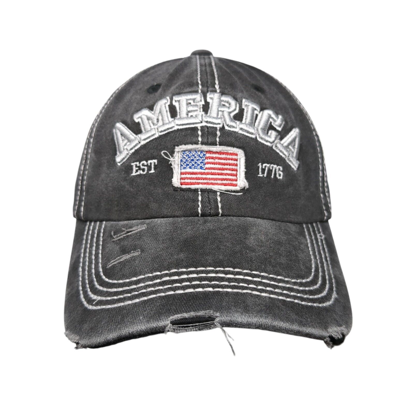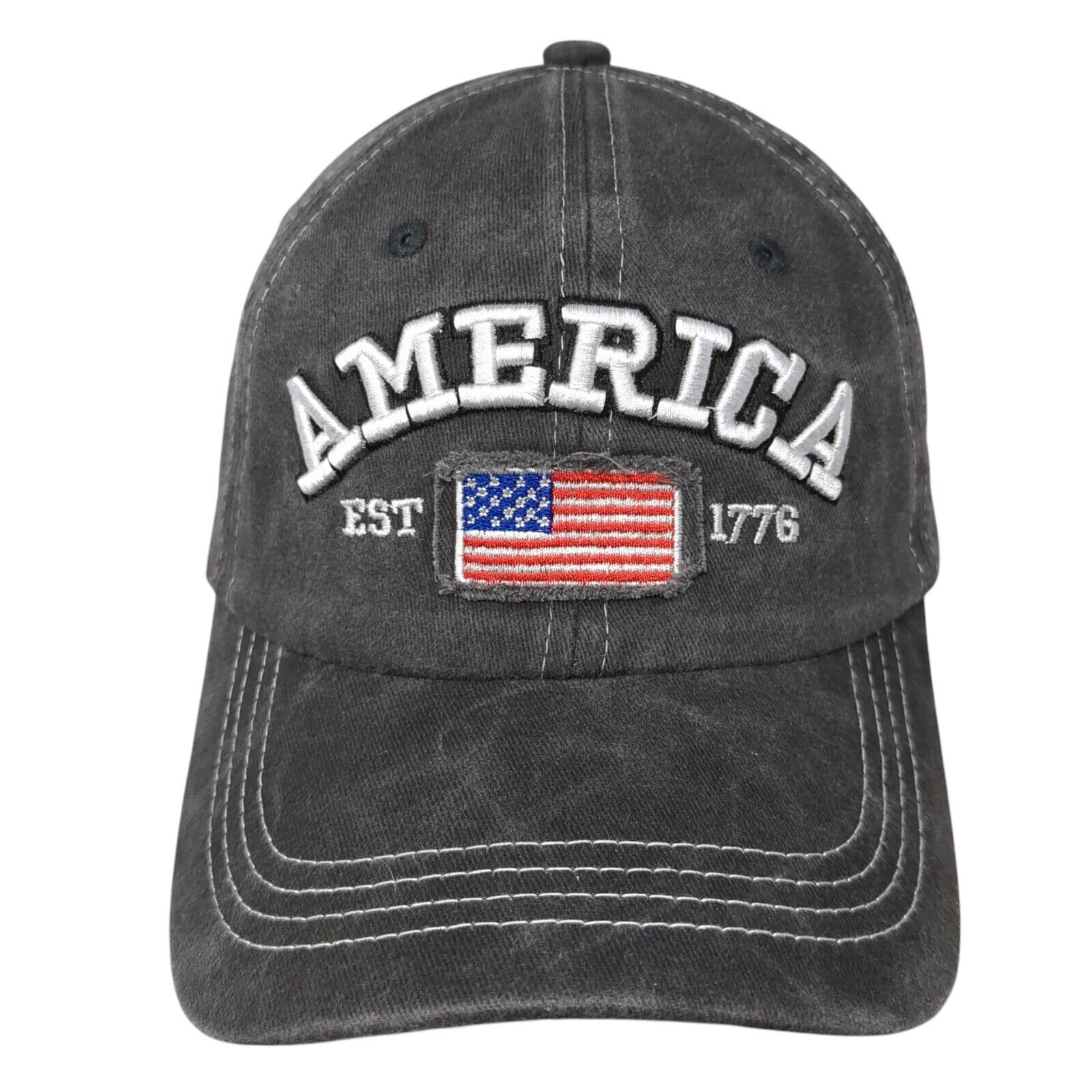 America Est 1776 Slideback Hat Gray One Size Adjustable Patriotic Distressed