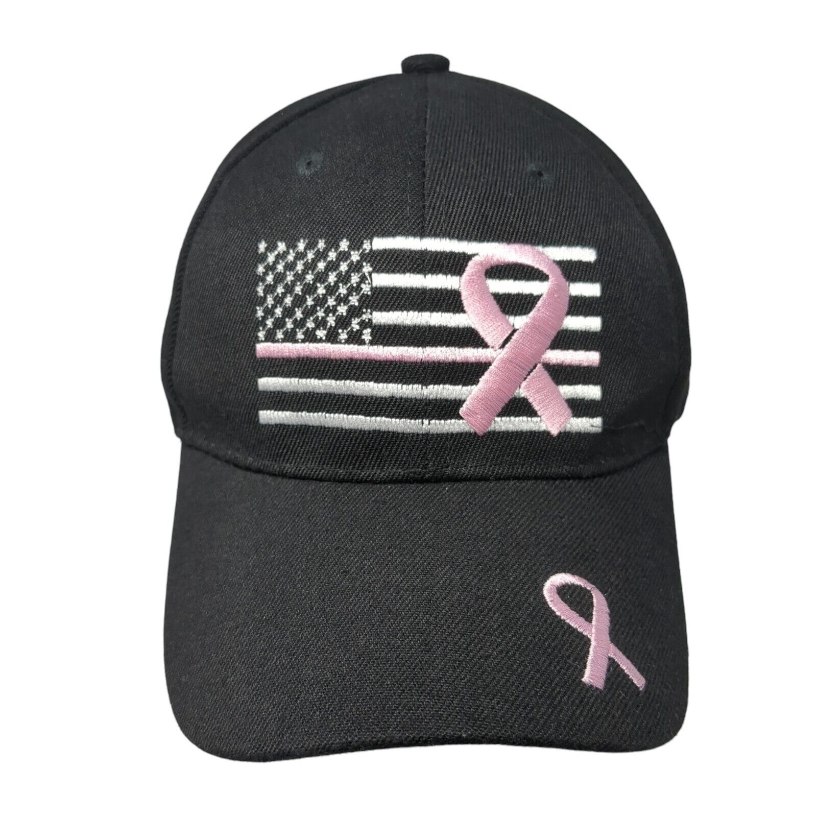 American Flag Pink Ribbon Strapback Hat Black One Size AdjustableCondition: This Unbranded Hat has no stains or rips. Sold as...