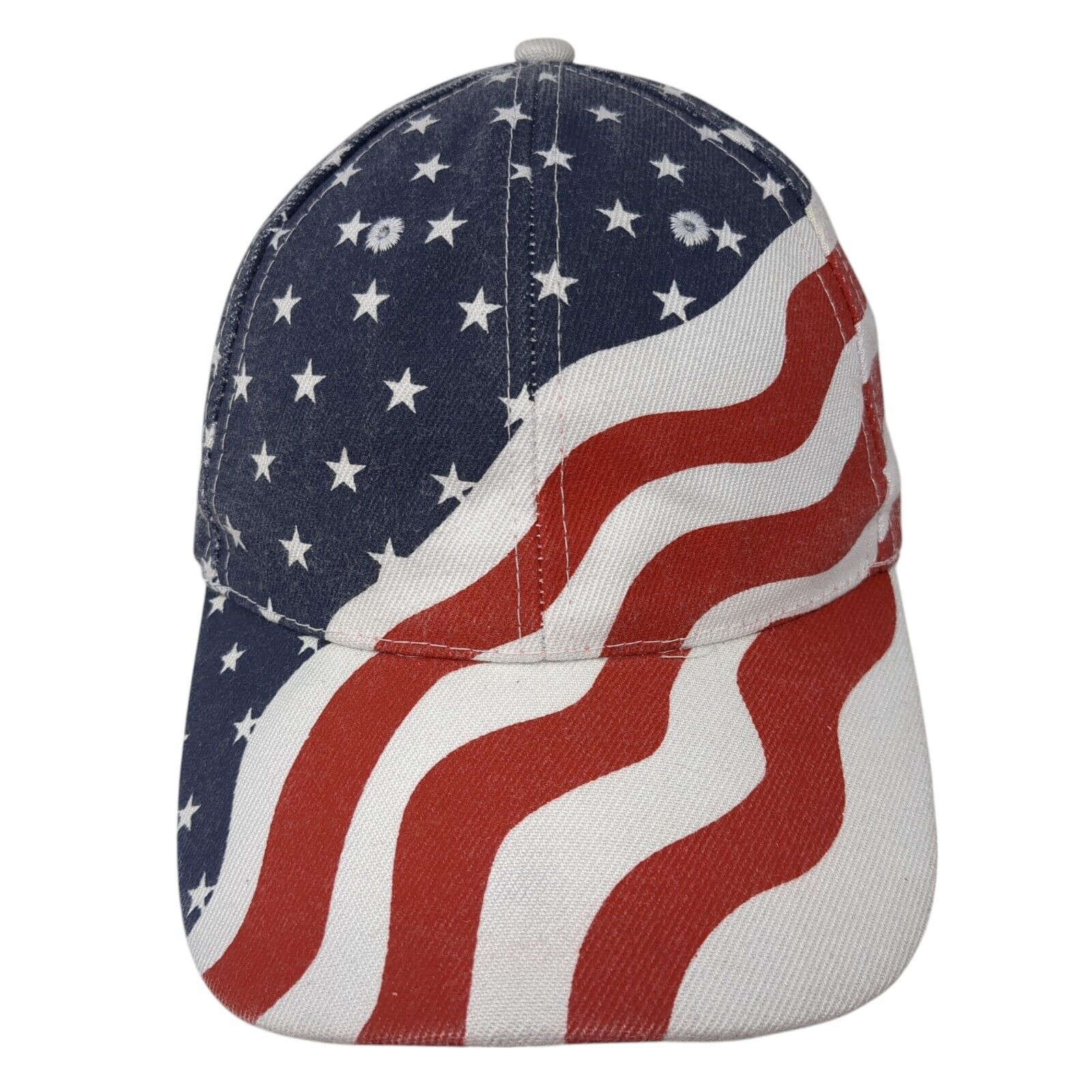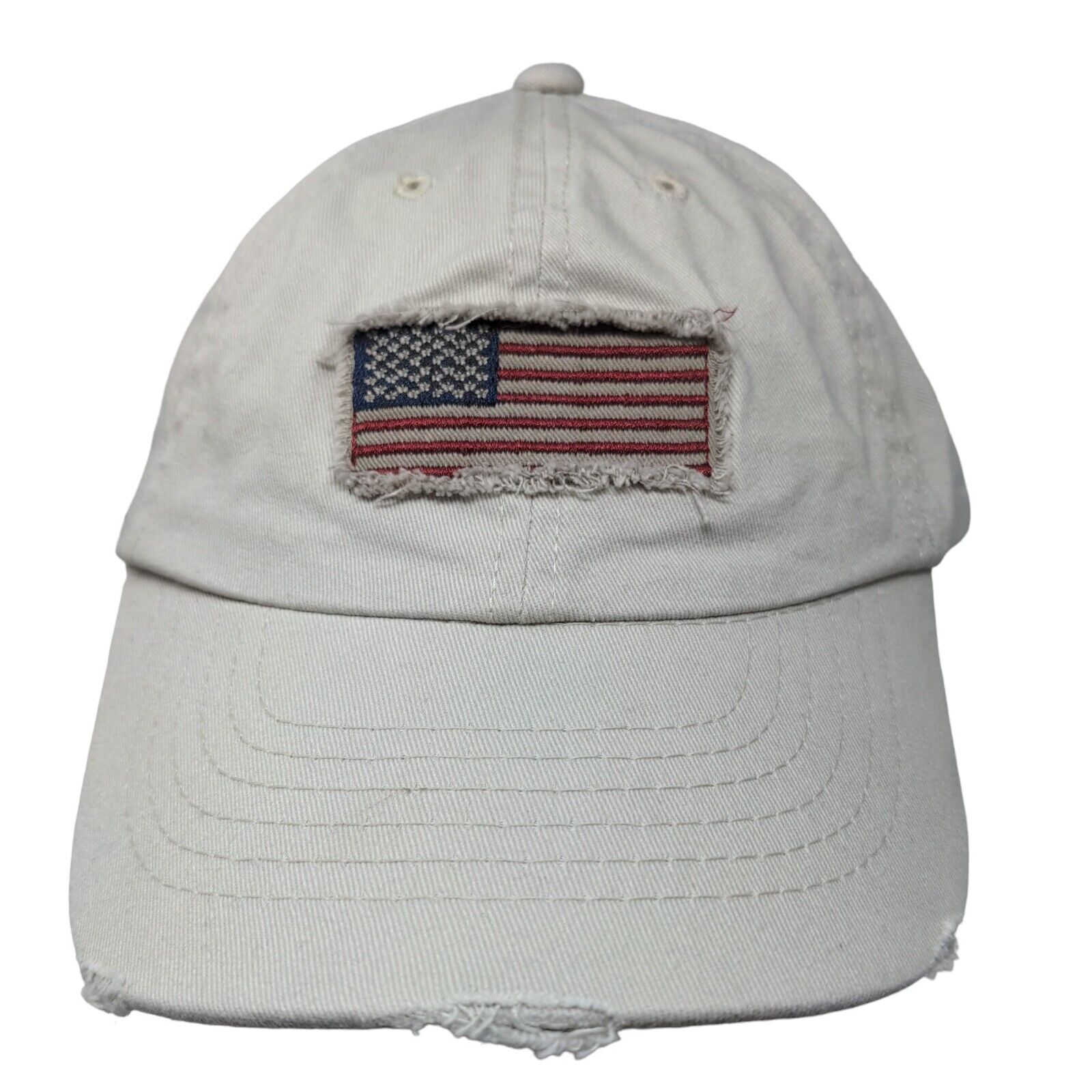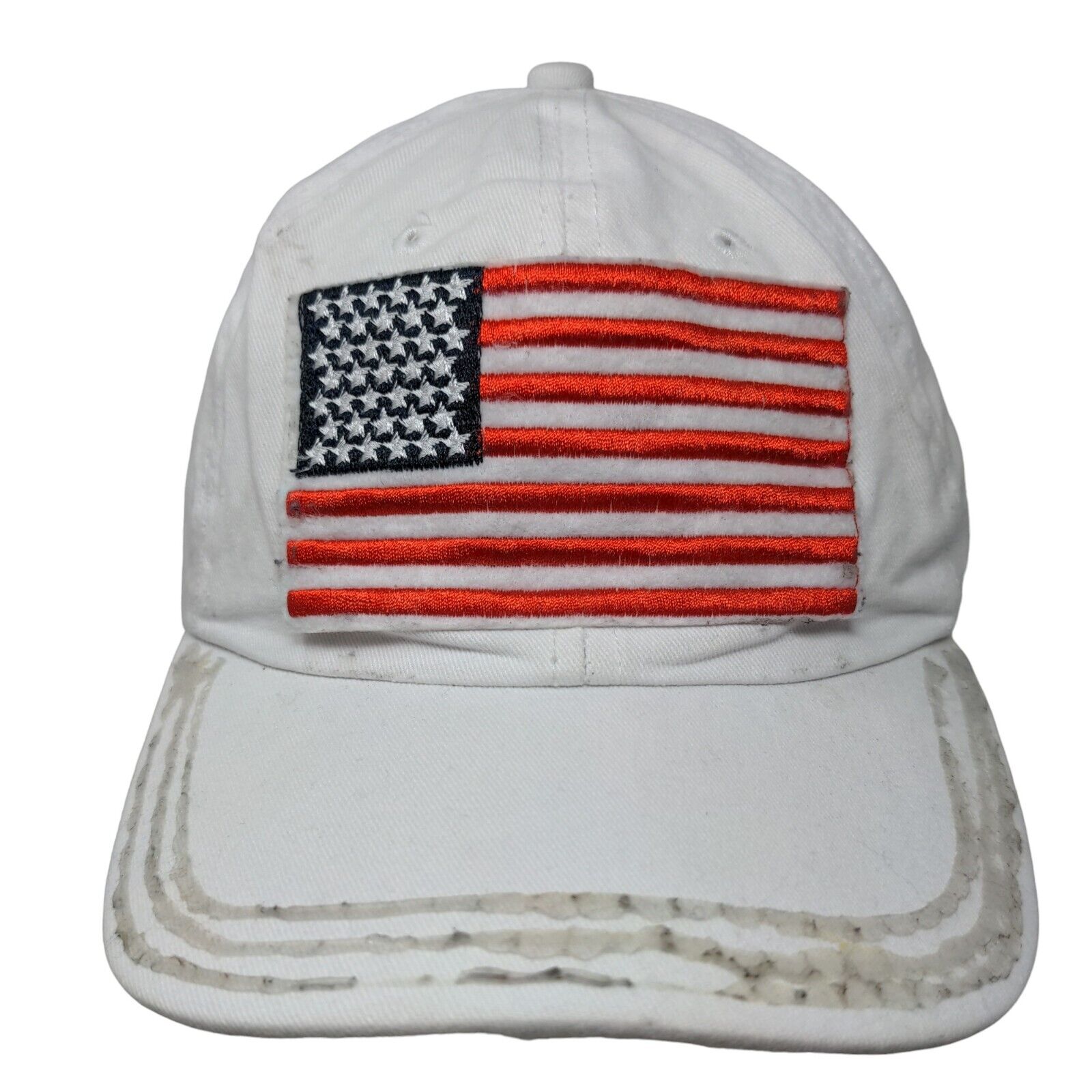 American Flag Patch Slideback Hat White OSFM Adjustable Vent HolesCondition: This Unbranded Hat has blemishes on both inside and outside....