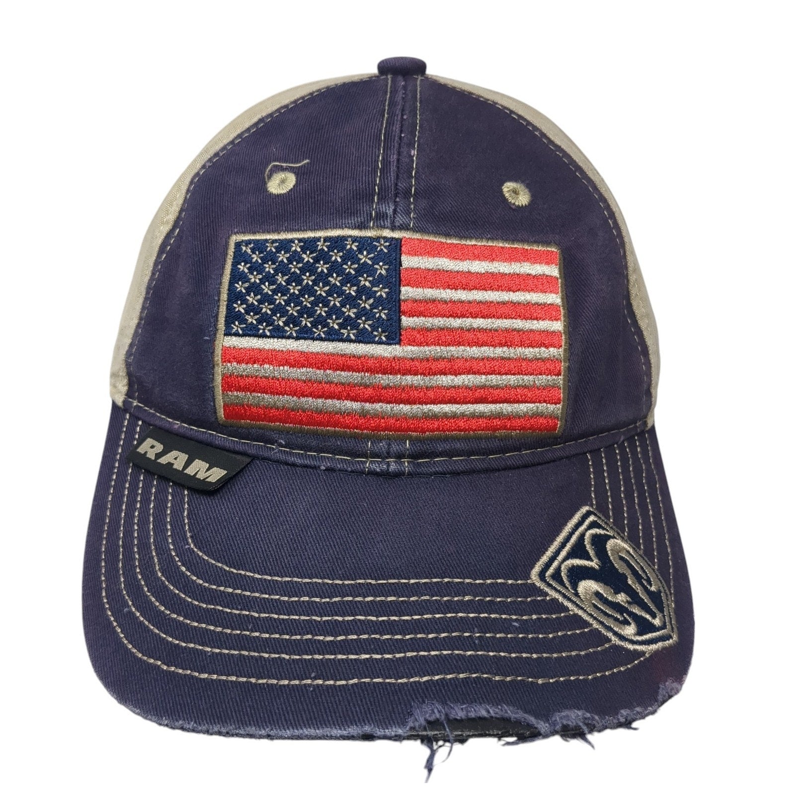 American Flag RAM Strapback Hat Blue One Size Colorblock Outdoor Cap