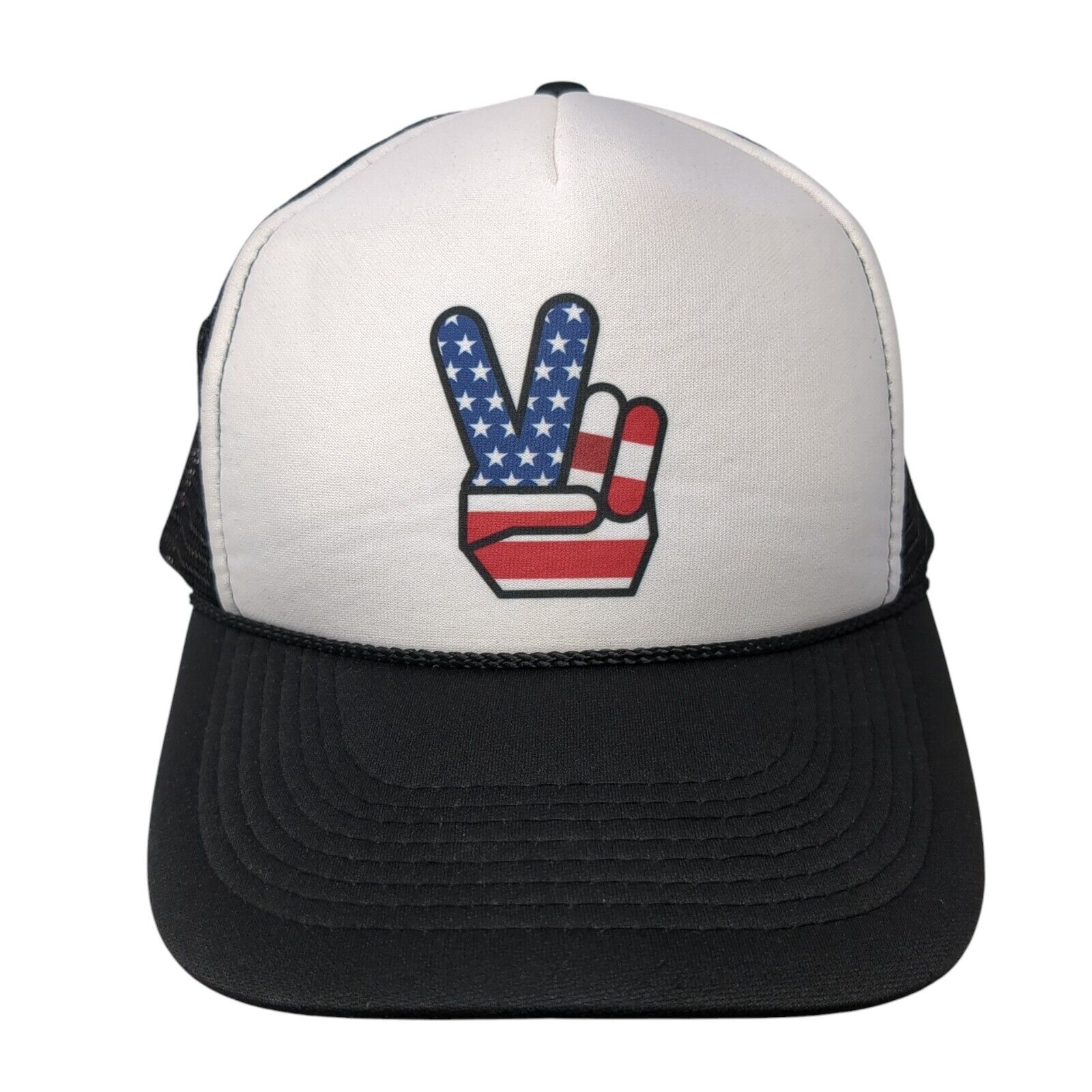 American Flag Peace Sign Rope Trucker Hat Black OSFM Mesh Back OttoCondition: This Otto Hat has no stains or rips....