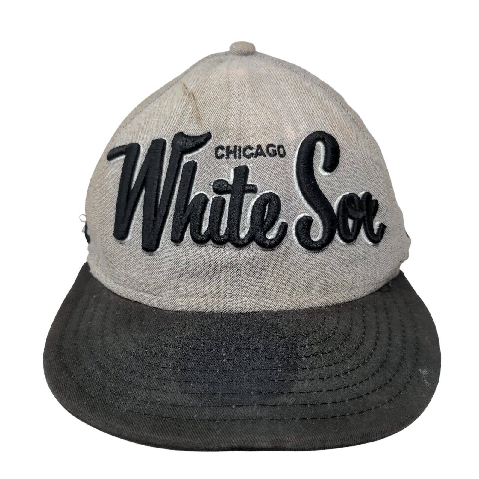 New Era MLB Chicago White Sox Snapback Hat Gray M-L Faded Distressed 9FiftyCondition: This Chicago White Sox Hat has some...