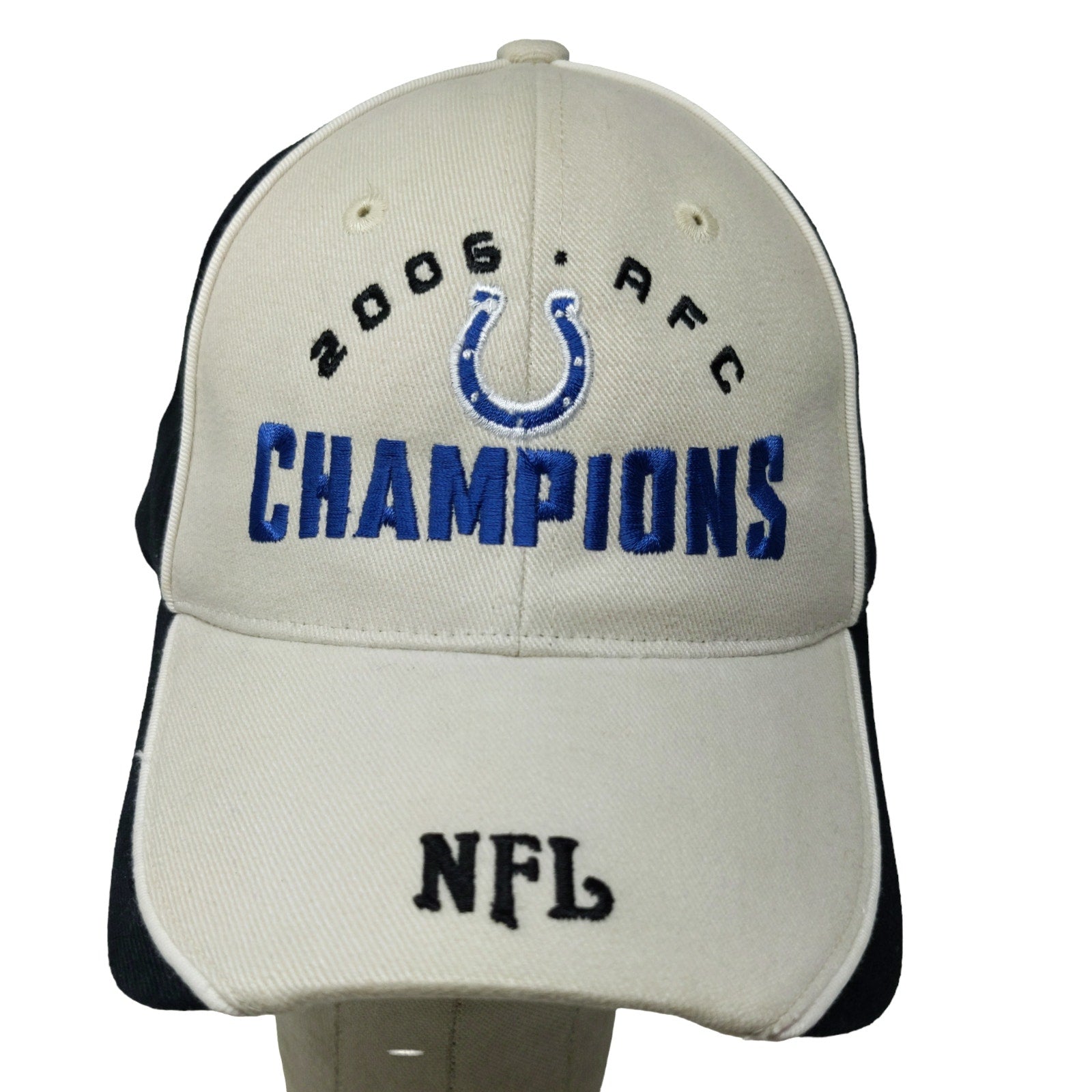 NFL Mens Indianapolis Colts 2005 AFC Champions Strapback Hat White OSFA Logo
