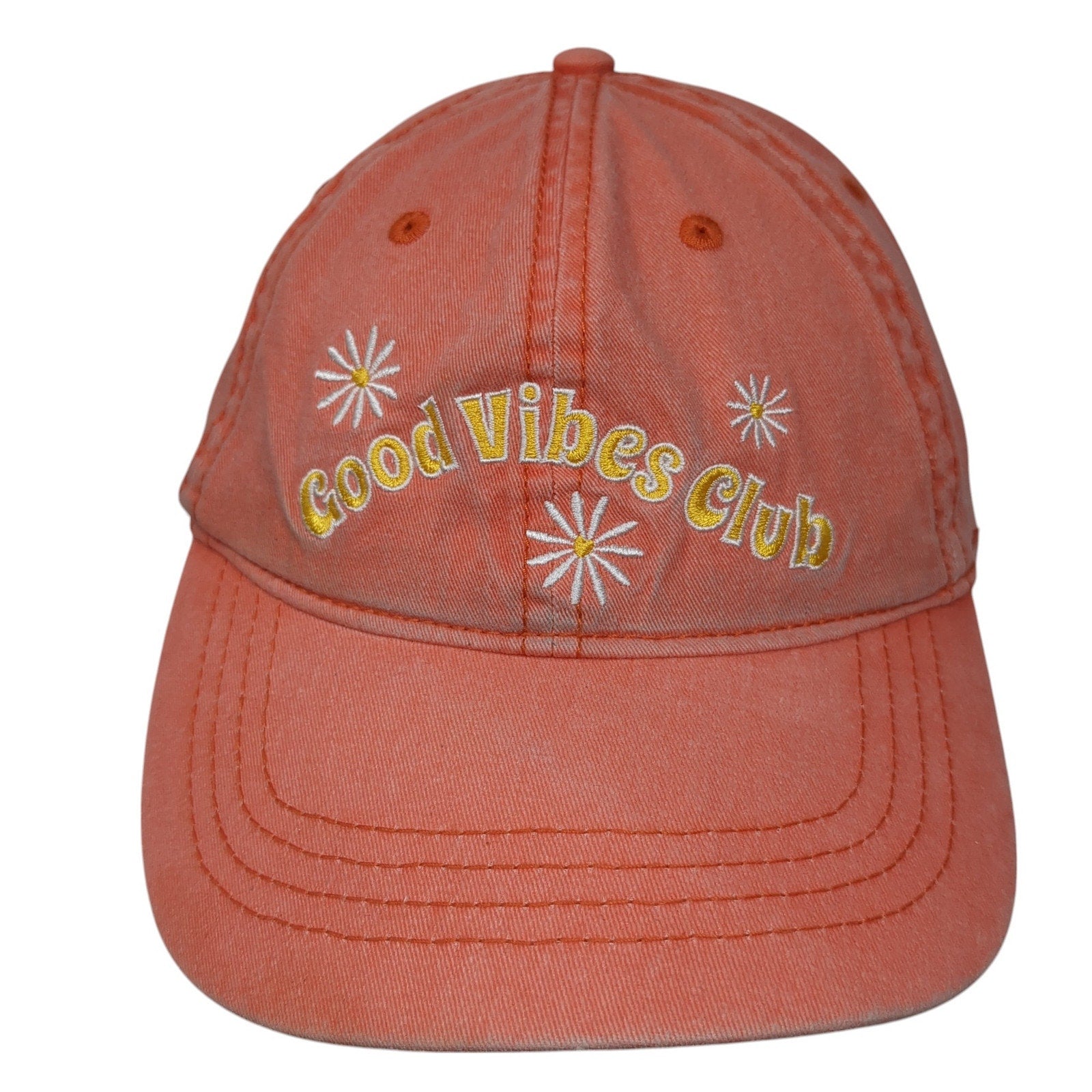 Good Vibes Club Slideback Baseball Cap Orange One Size Adjustable EmbroideredCondition: This hat has blemishes on the outside. Sold as...