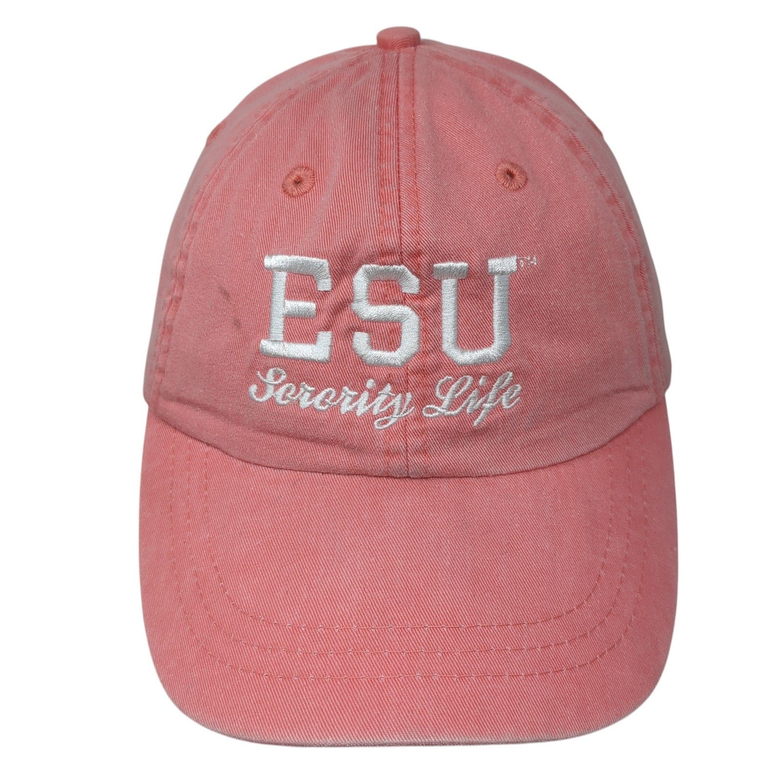ESU Sorority Life Slideback Baseball Cap Pink One Size Adjustable 6 Panel AdamsCondition: This hat has blemishes on both the...