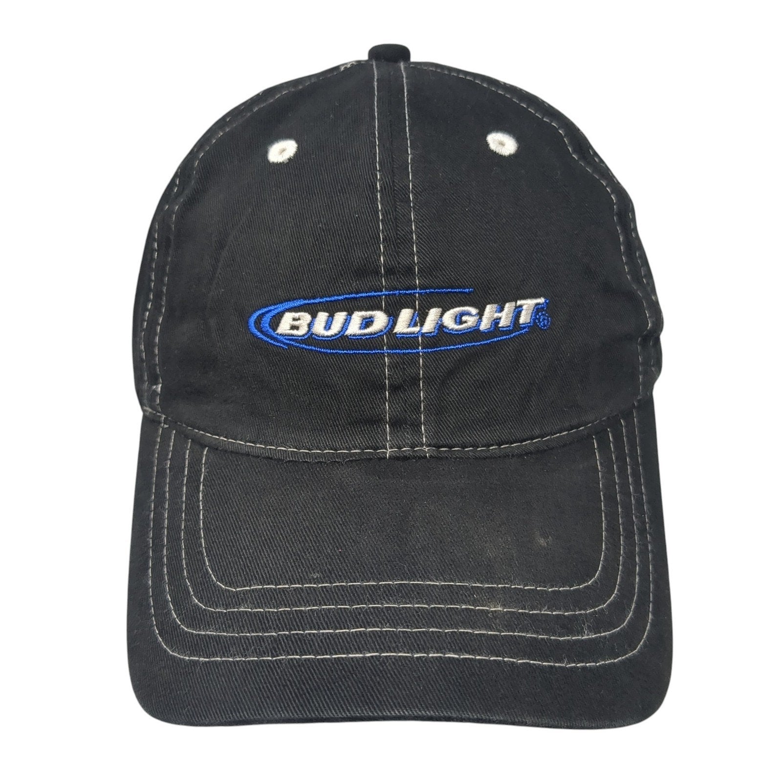 Bud Light Slideback Baseball Cap Black One Size Adjustable Embroidered 6 PanelCondition: This hat has blemishes on both the inside...