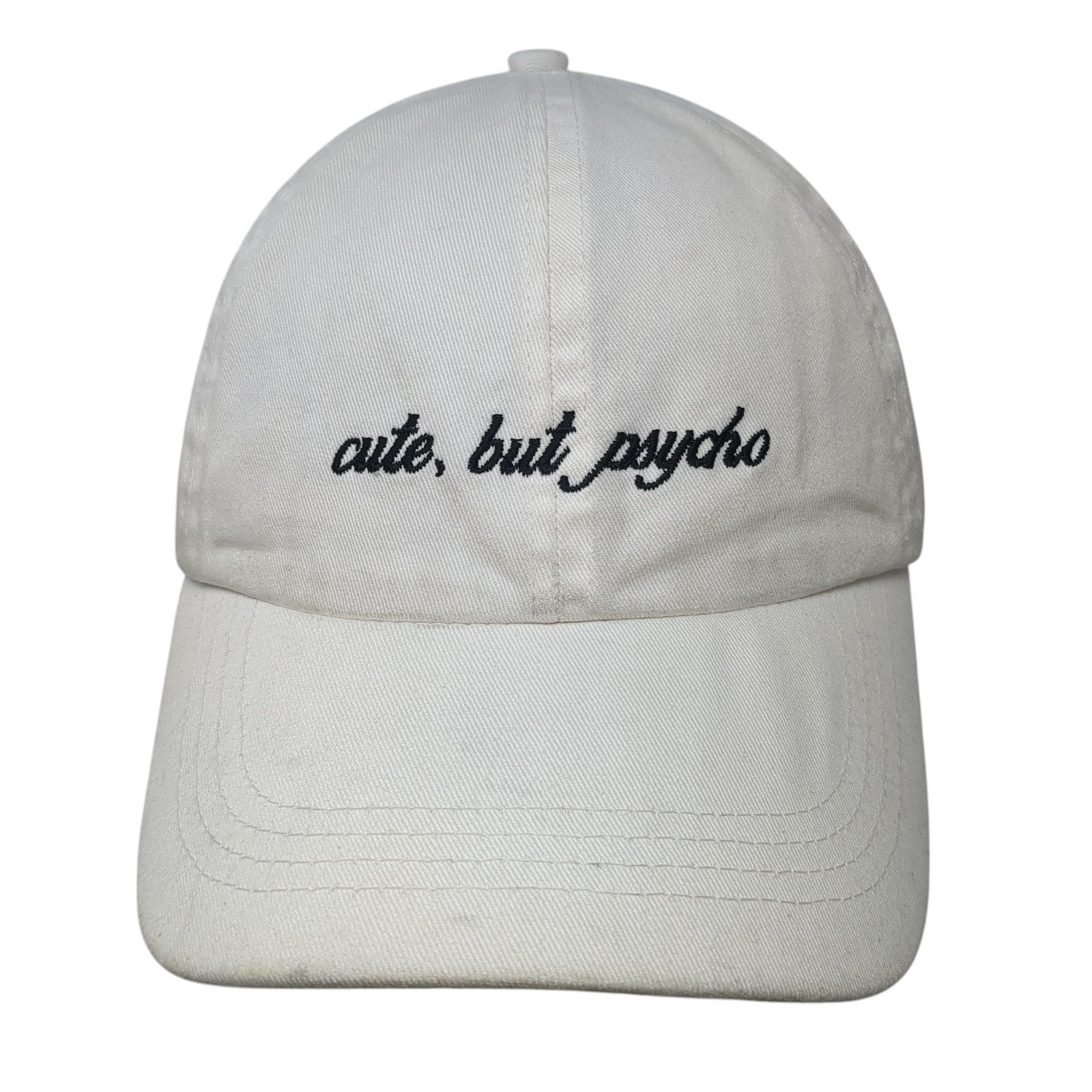 Cute But Psycho Slideback Baseball Cap White One Size Adjustable David & YoungCondition: This hat has blemishes on both the...