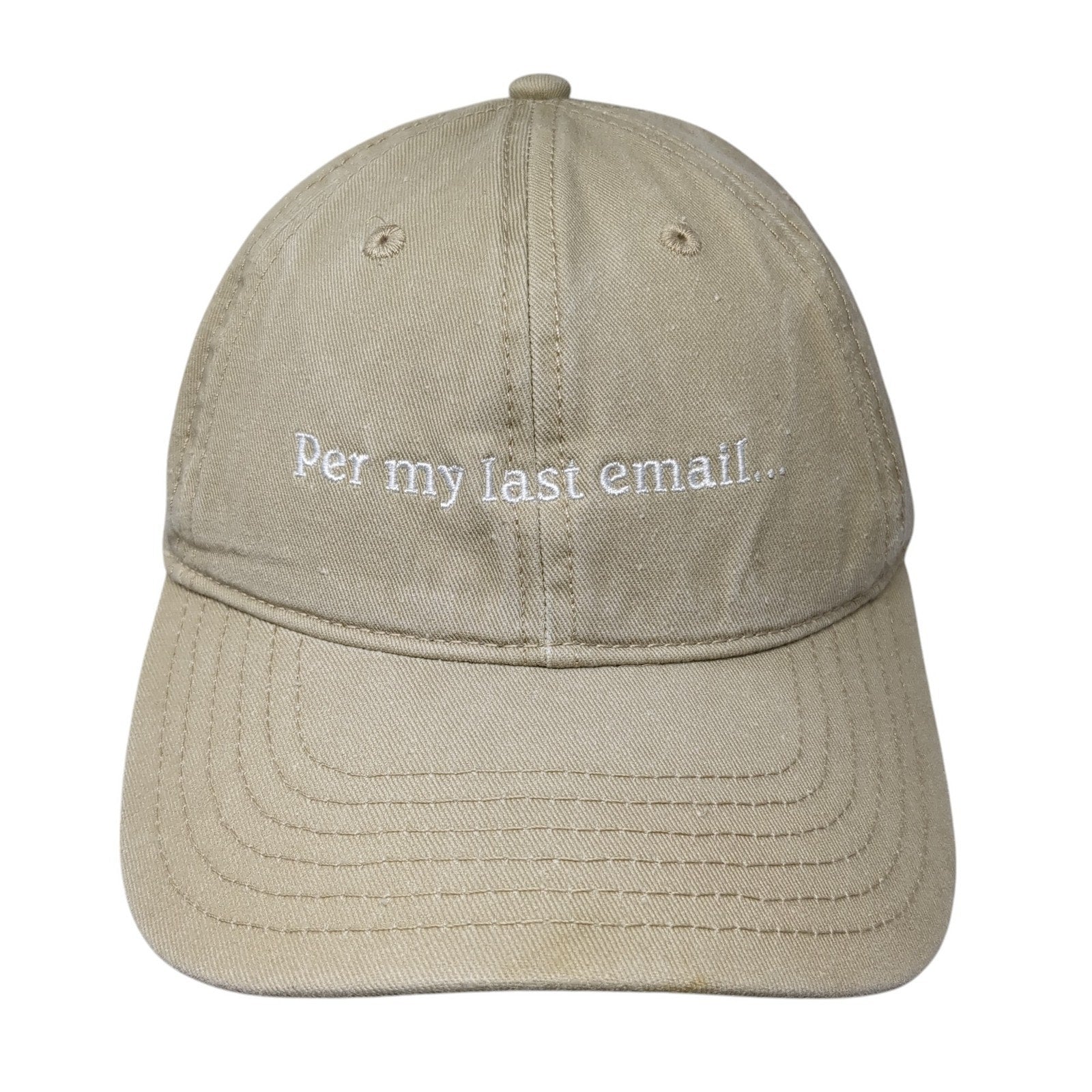 Per My Last Email Slideback Baseball Cap Brown One Size Adjustable Mad EngineCondition: This hat has blemishes on both the...