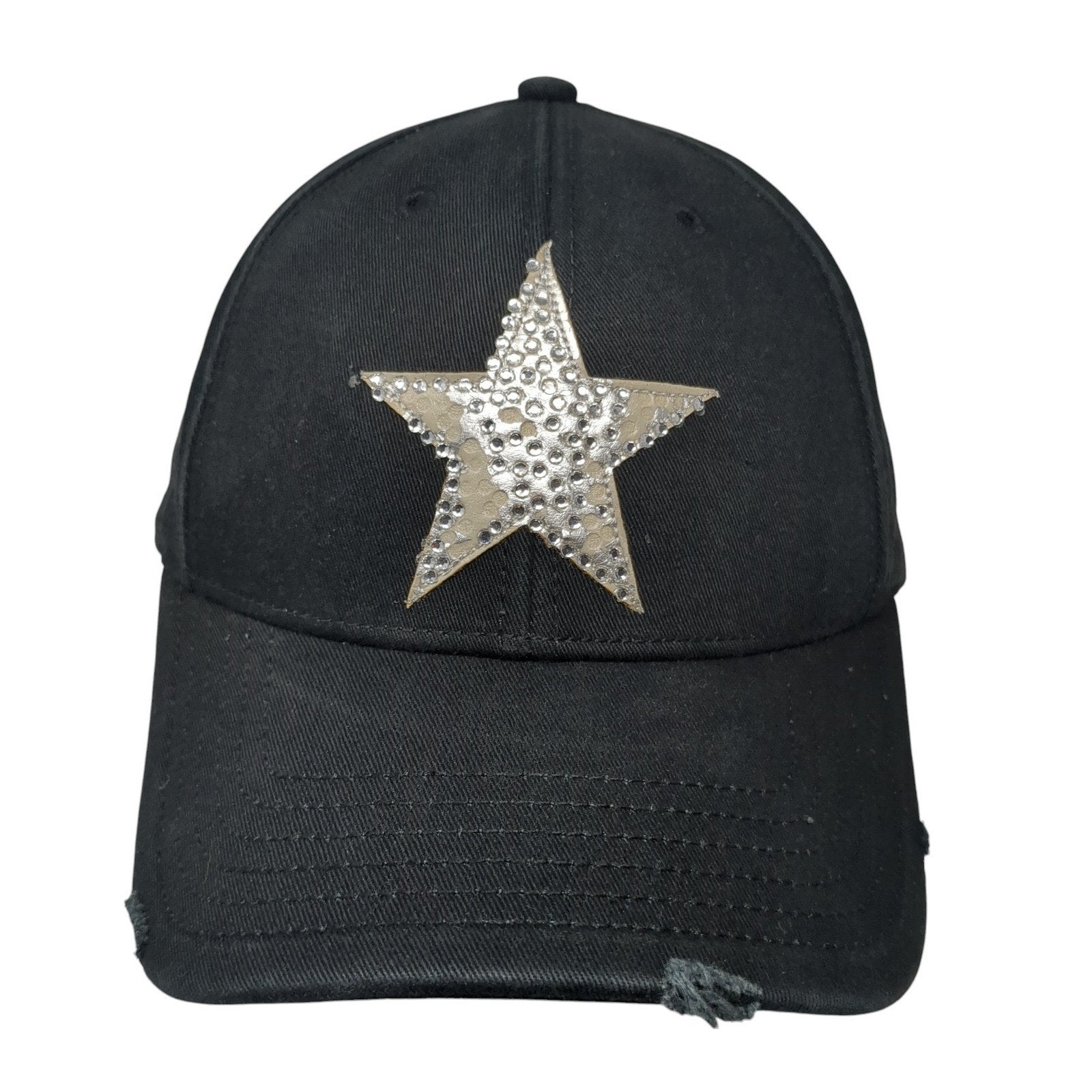 Star Slideback Baseball Cap Black One Size Adjustable Distressed Royal PlushCondition: This hat has blemishes on the outside. Sold as...