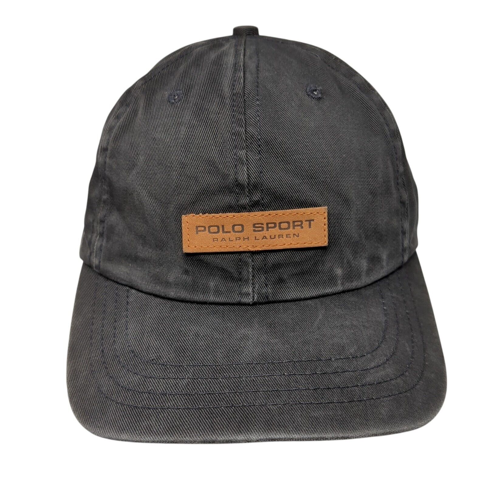 Vintage Polo Sport Ralph Lauren Slideback Hat Black Size OSFA Leather Patch Logo