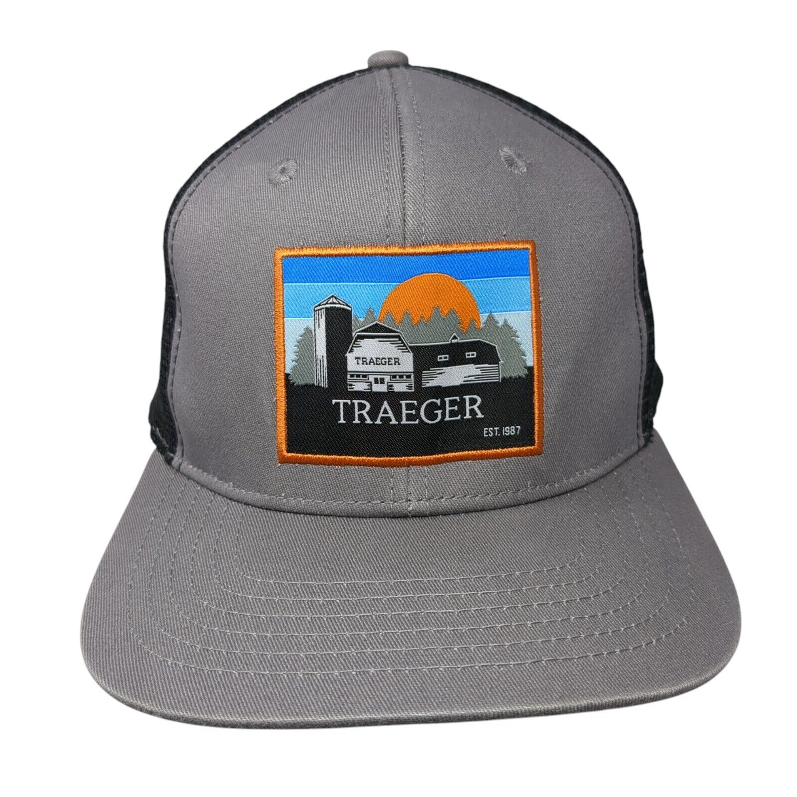 Traeger Est. 1987 Wood Fired Grills Snapback Trucker Hat Gray OS Adjustable Mesh