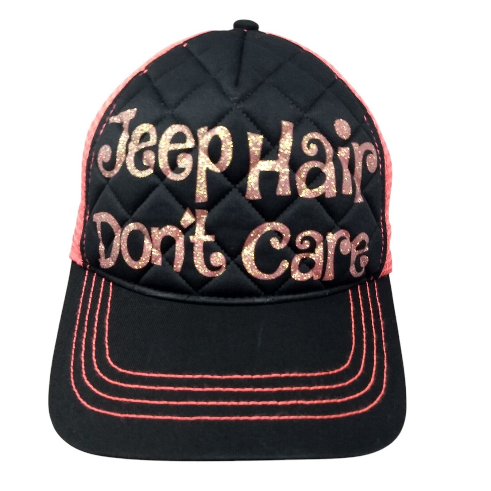 Jeep Hair Don't Care Snapback Trucker Hat Multi OSFA Quilted Mesh BackCondition: This HG Hat has no stains or rips....